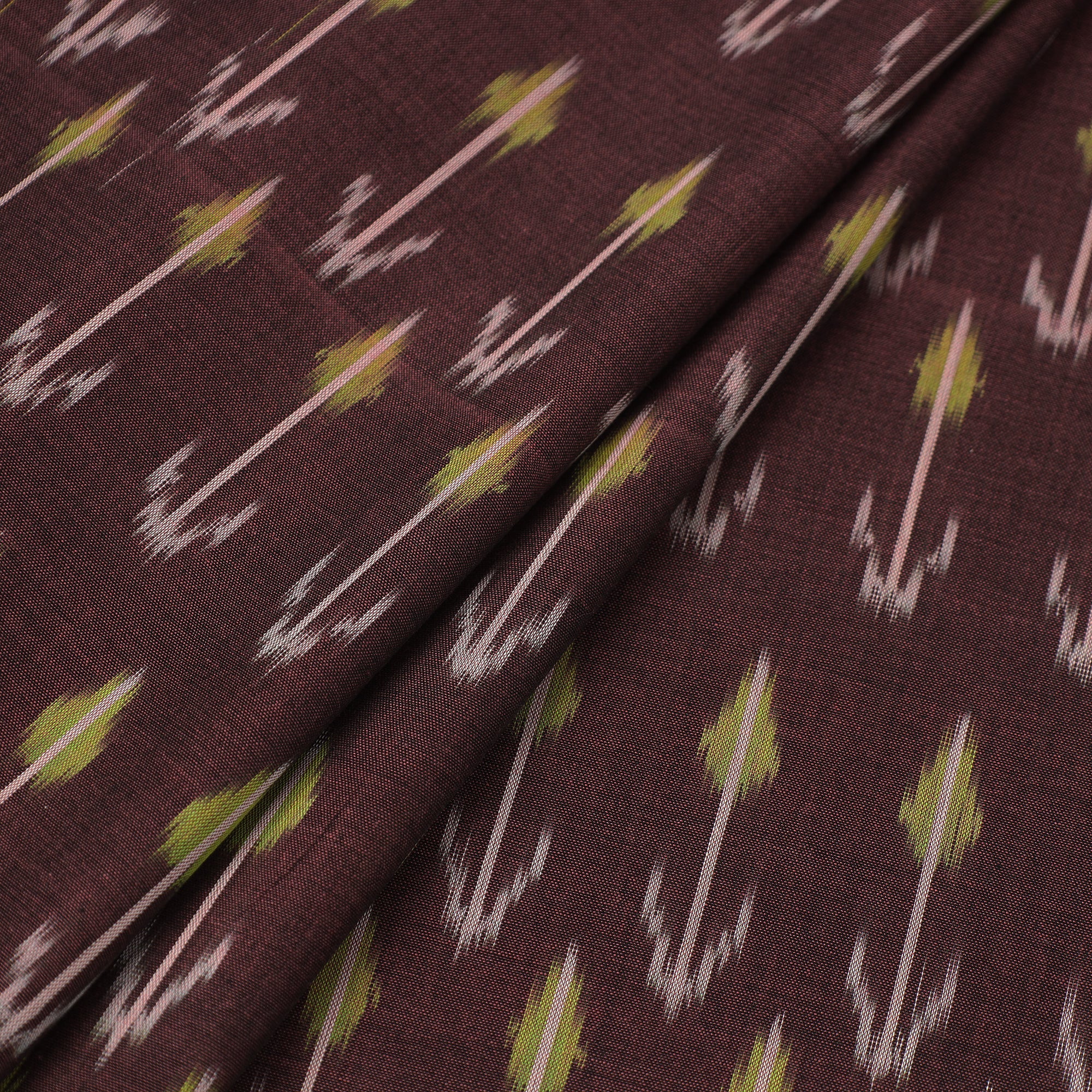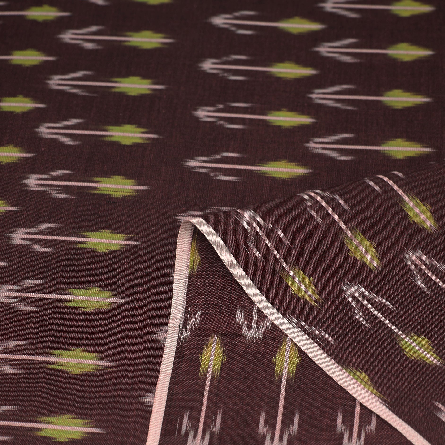 Fine quality mercerised cotton brown pochampally ikat fabric from village of Ramannapeta, Telangana. Ikat (Ikkat) is a dyeing technique used to pattern textiles that employs a resist dyeing process similar to tie-dye on either the warp or weft fibers prior to dyeing. Ikat has lovely patterns and are world famous for their extremely beautiful colors, texture and designs. Perfect for both traditional and modern projects.