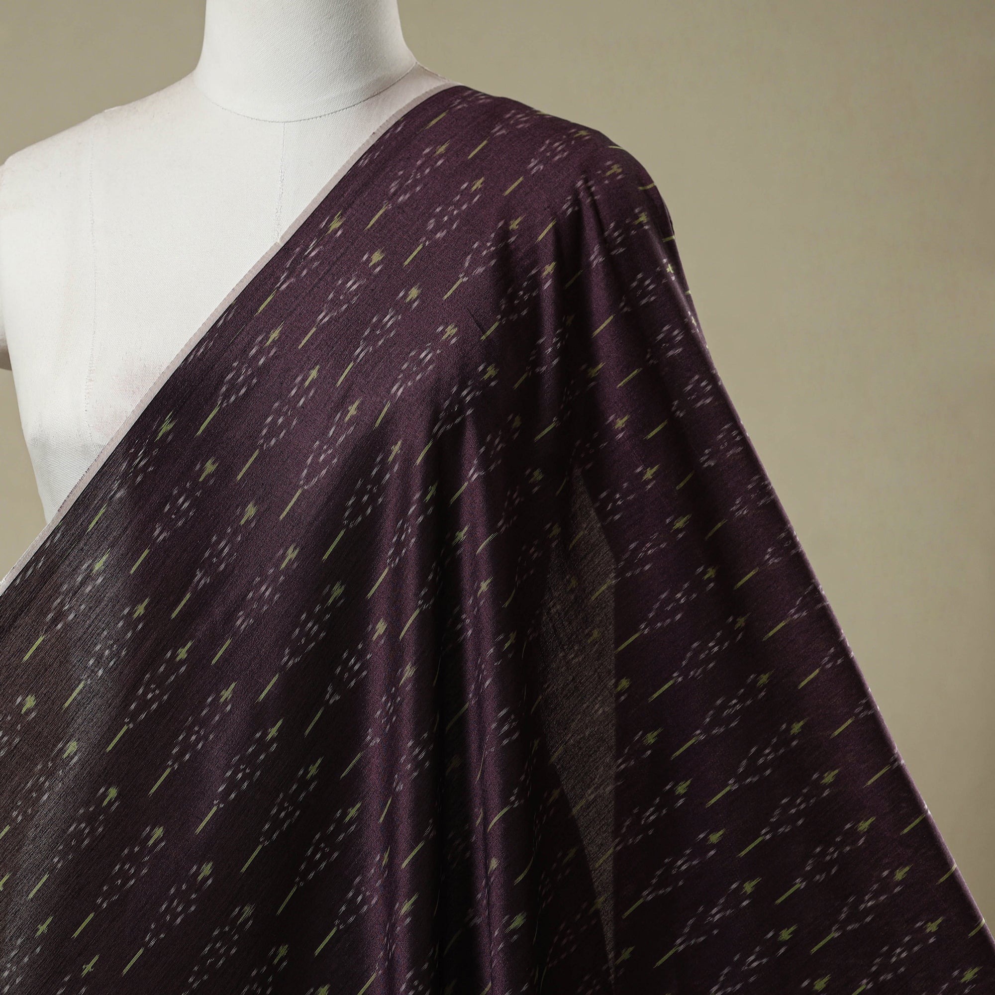 Explore purple mercerised cotton pochampally ikat fabric from Telangana. This fabric is created using the traditional resist-dyeing technique, where threads are dyed before weaving to form striking patterns. Known for its vibrant colors and smooth texture, it beautifully blends tradition with modern style. Perfect for making sarees, kurtas, home decor and creative fashion projects.