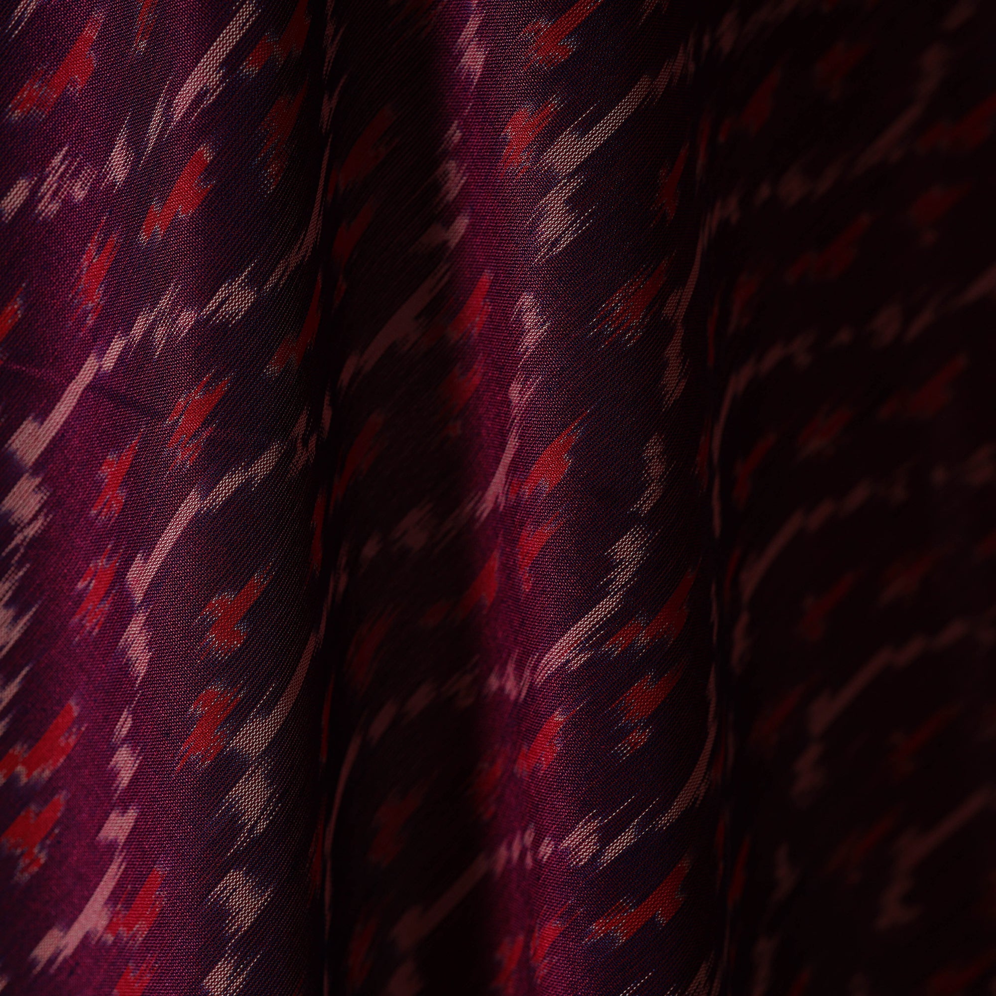 Explore purple mercerised cotton pochampally ikat fabric from Telangana. This fabric is created using the traditional resist-dyeing technique, where threads are dyed before weaving to form striking patterns. Known for its vibrant colors and smooth texture, it beautifully blends tradition with modern style. Perfect for making sarees, kurtas, home decor and creative fashion projects.
