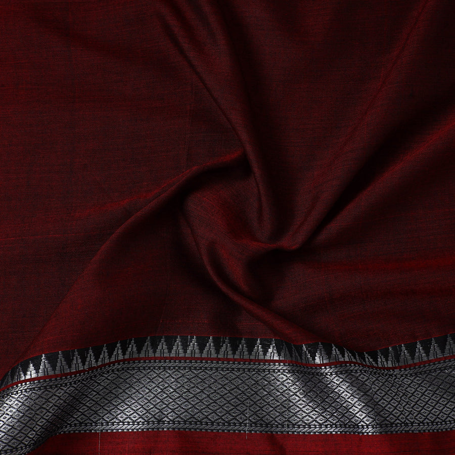 This prewashed maroon mercerised cotton zari border dharwad fabric. Perfect for crafting stylish outfits, home decor, or creative projects, it combines durability with elegance, this dharwad fabric from Karnataka brings functionality and a touch of tradition to your creations.