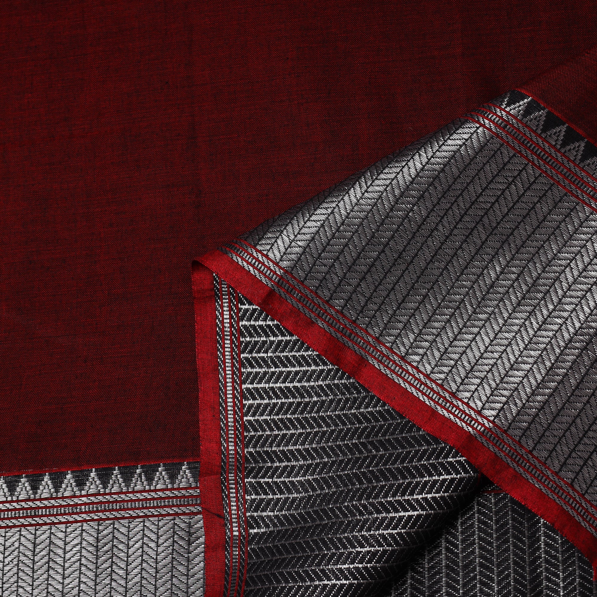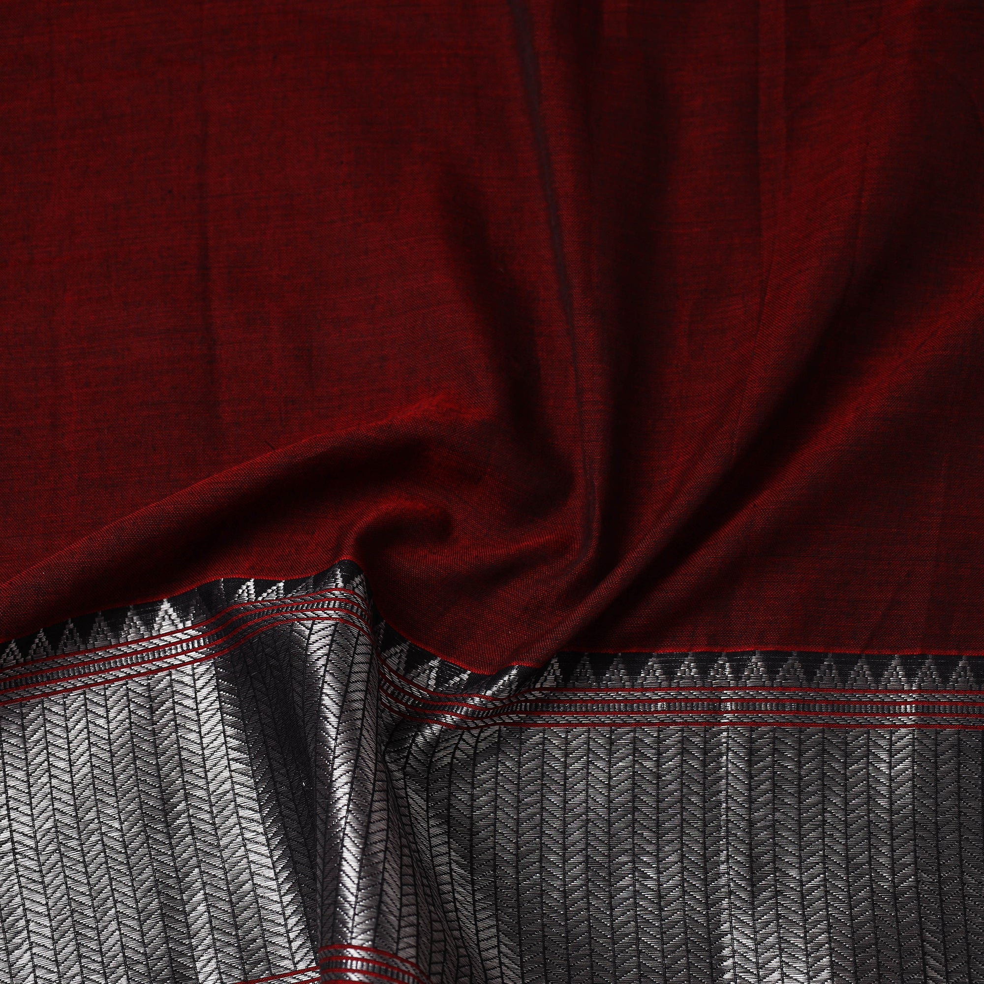 Maroon dharwad fabric is crafted from mercerised cotton and finished with a traditional zari border. This fabric is machine-woven in Karnataka. Lightweight, durable, and versatile perfect for fashion or home decor accents.