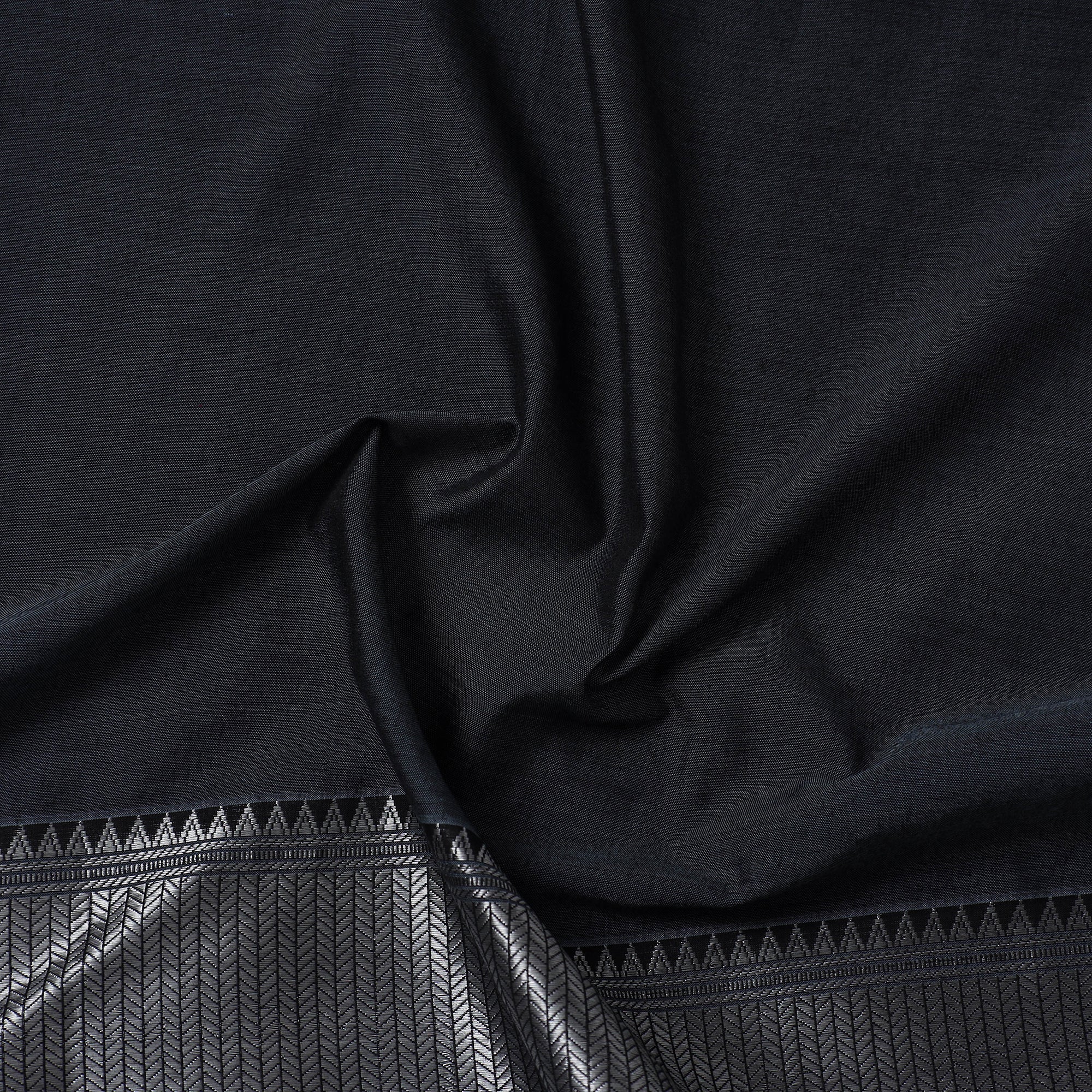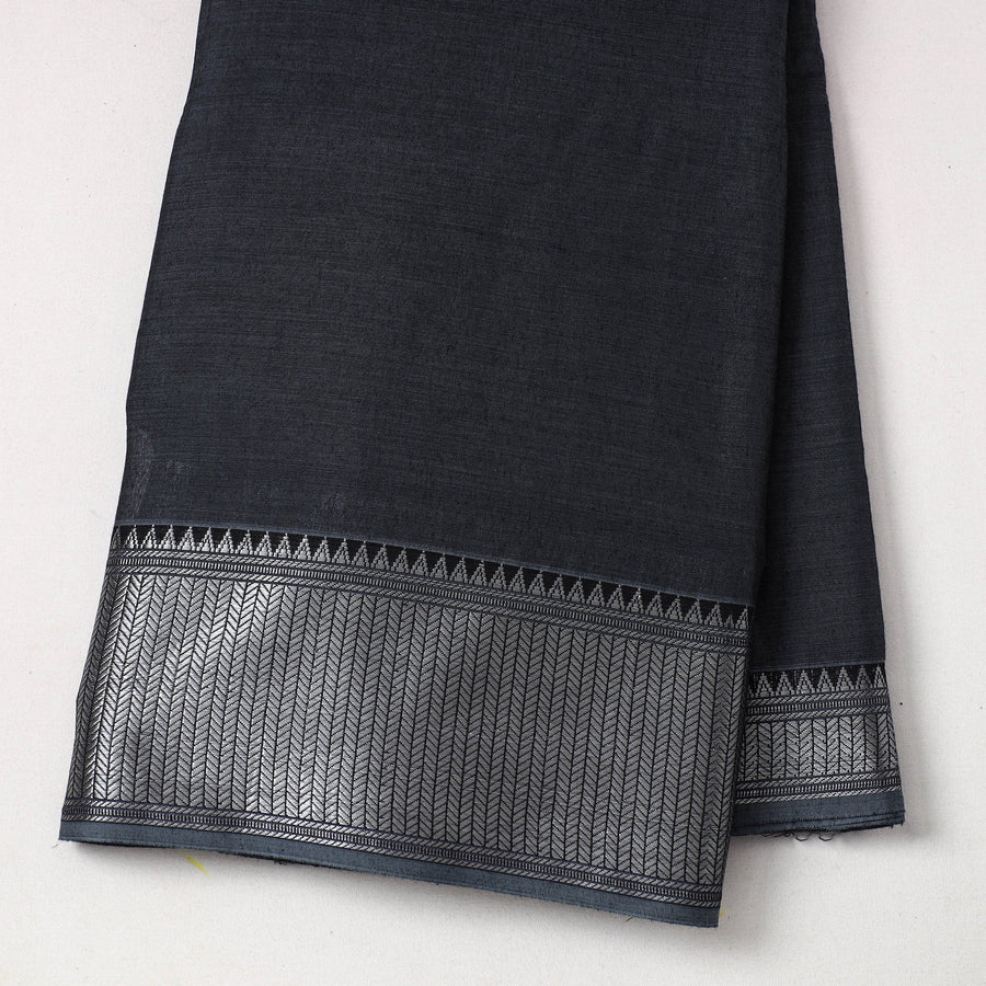 This prewashed dark grey mercerised cotton zari border dharwad fabric. Perfect for crafting stylish outfits, home decor, or creative projects, it combines durability with elegance, this dharwad fabric from Karnataka brings functionality and a touch of tradition to your creations.