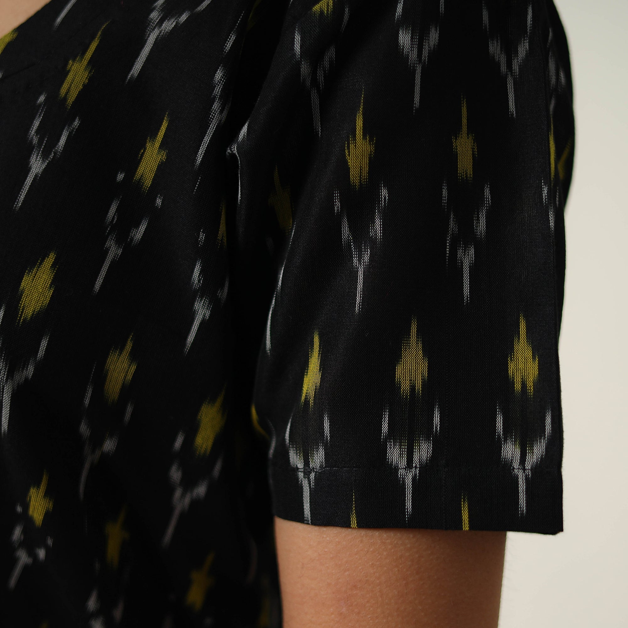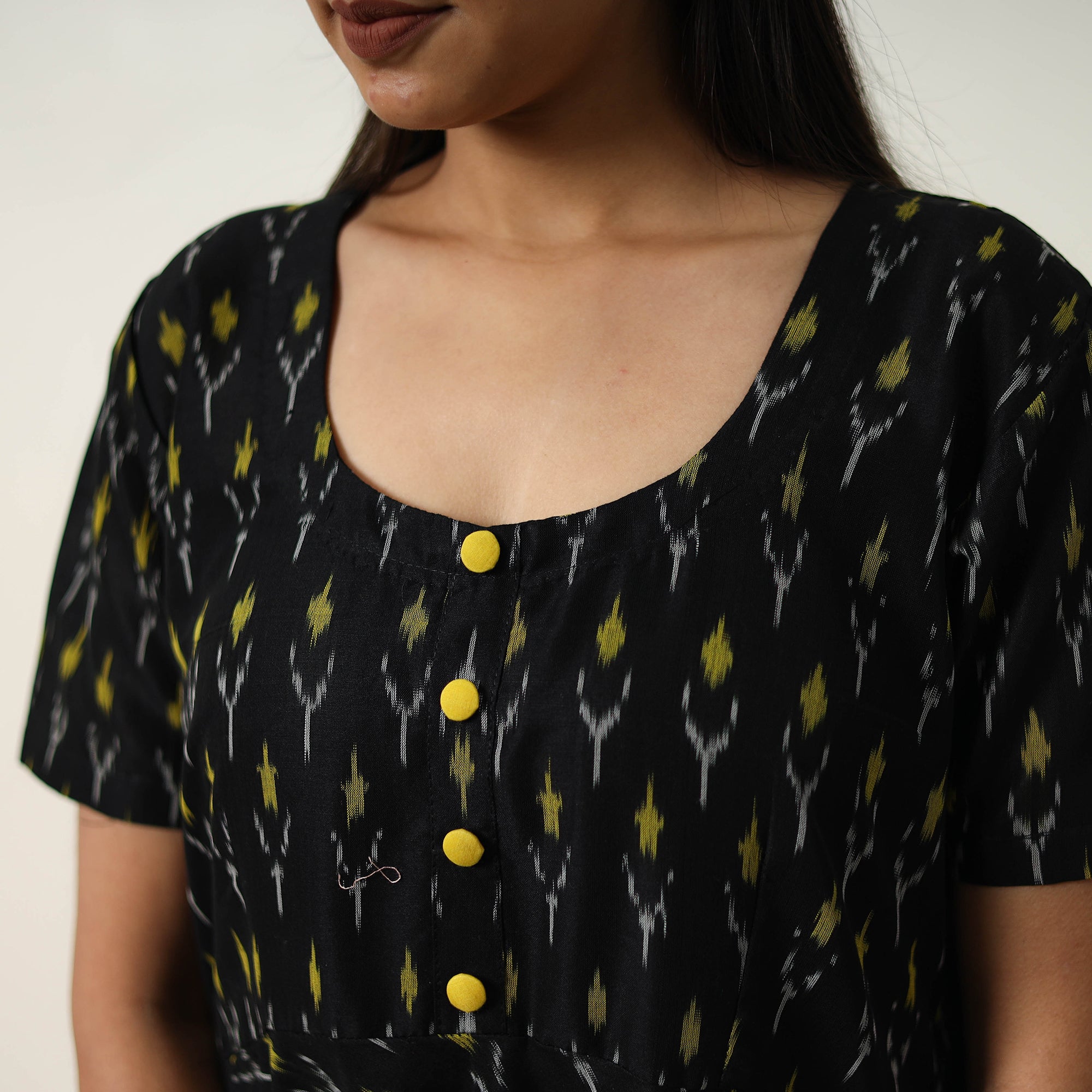 This uniquely designed mercerized cotton flared pochampally ikat dress is a perfect blend of style and comfort. Featuring a breathable and skin-friendly fabric, this dress offers unmatched comfort and timeless style. This dress is perfect for your daily outing and for a special occasion.