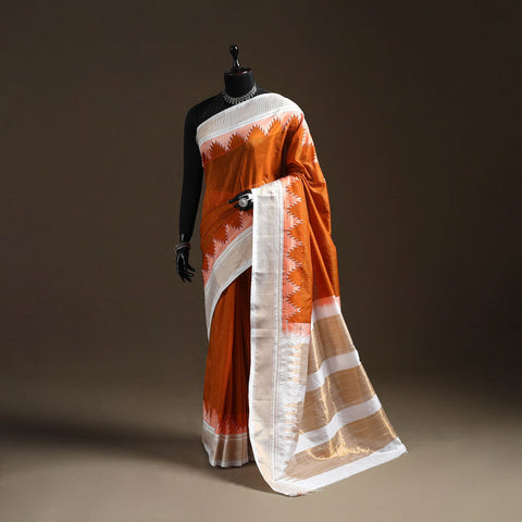 • Mercerized cotton gadwal checks ilkal saree with temple