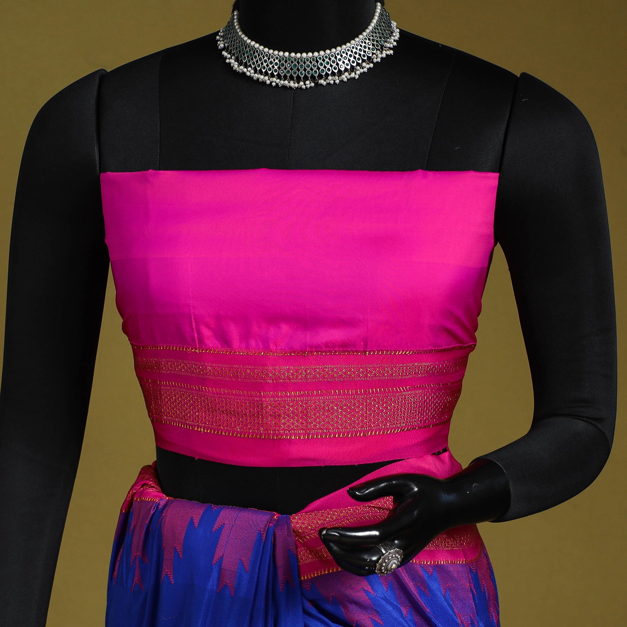 llkal Saree is named after the town of Ilkal in the Bagalkot district of Karnataka, India. Ilkal Saree has cotton warps in the body, rayon warps in the brim, and art silk warps in the pallu part of the saree.