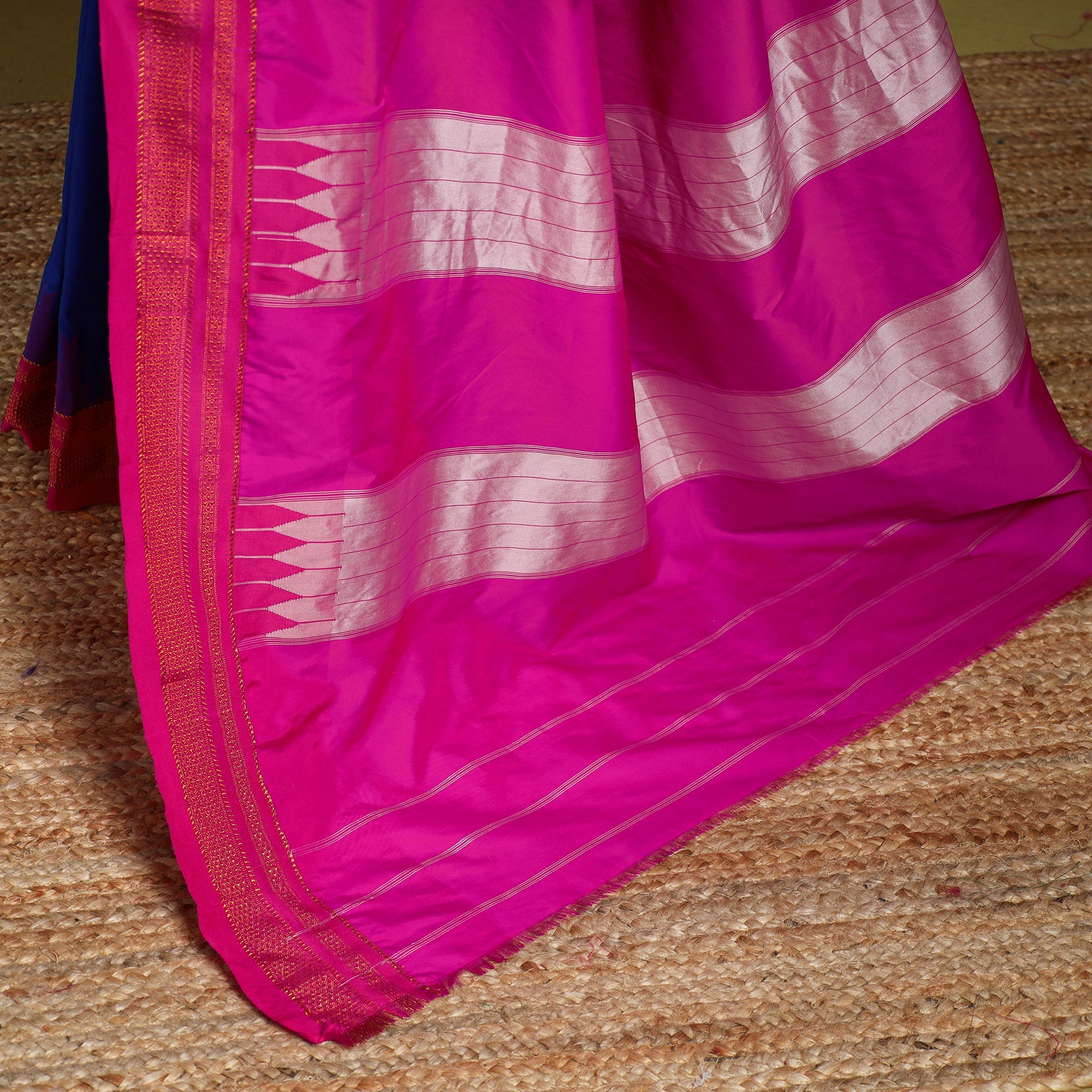 A real silk saree will have slight variations in texture uniformity, which are quite noticeable.