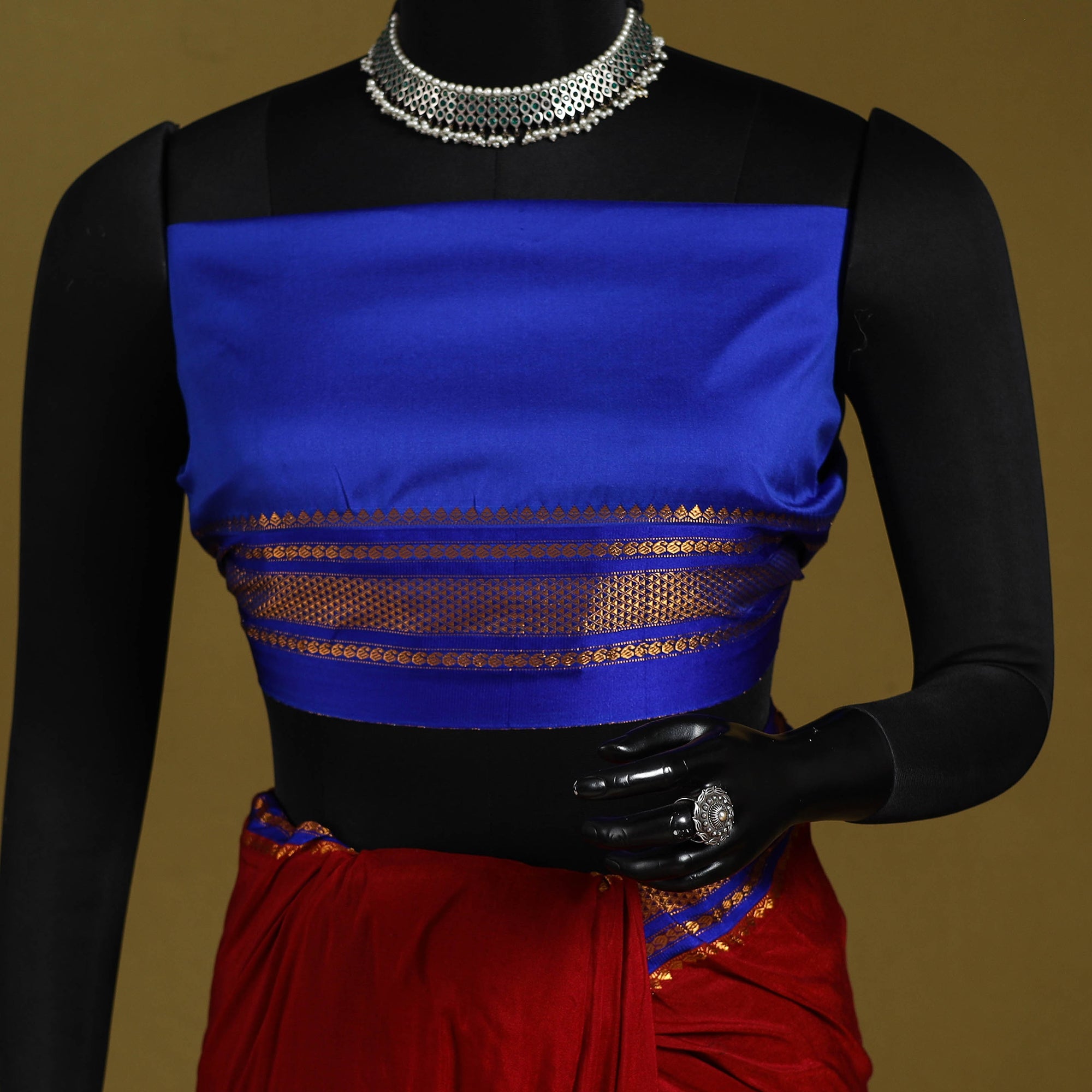 llkal Saree is named after the town of Ilkal in the Bagalkot district of Karnataka, India. Ilkal Saree has cotton warps in the body, rayon warps in the brim, and art silk warps in the pallu part of the saree.