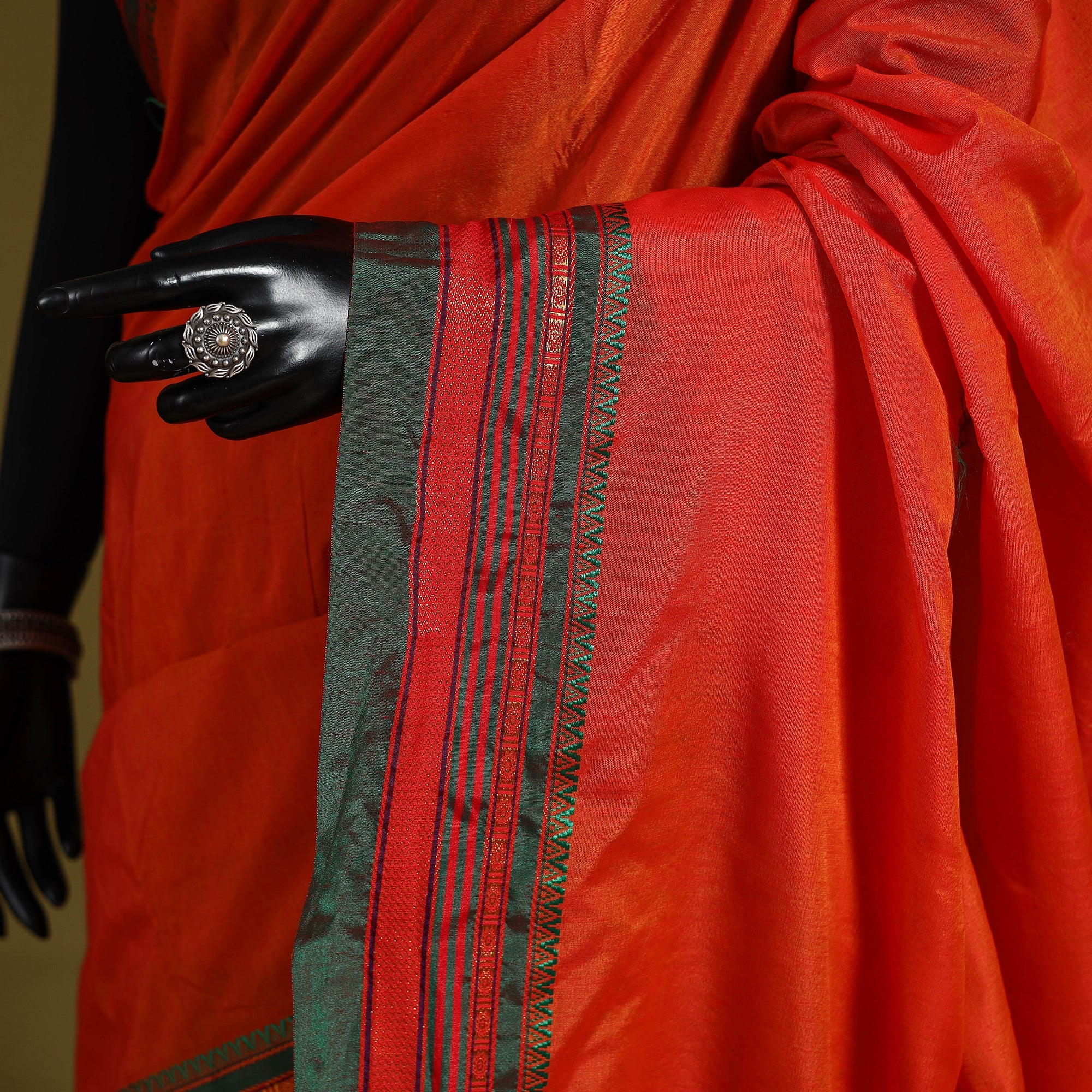 This red mercerized cotton Ilkal saree blends everyday comfort with elegant charm. Woven in the traditional Ilkal technique, it has a soft drape and a subtle sheen, making it ideal for both casual outings and festive occasions. The classic border enhances its beauty, while the rich weave reflects the heritage of Karnataka’s looms. It comes with a matching blouse piece to complete the graceful look.