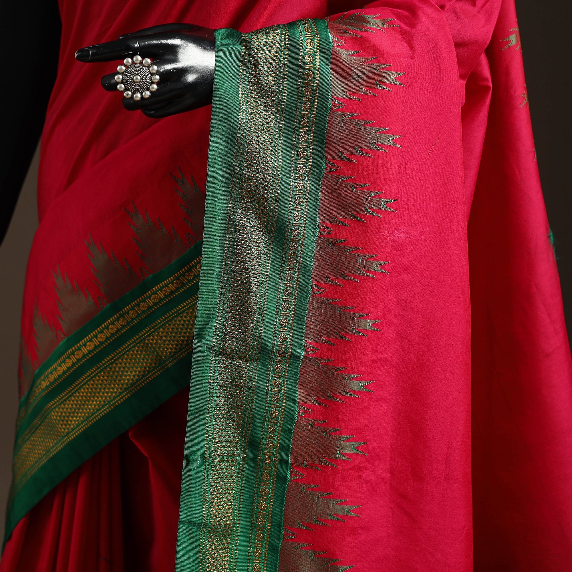 Pink - Mercerized Cotton Ilkal Saree with Rudraksha Border 22