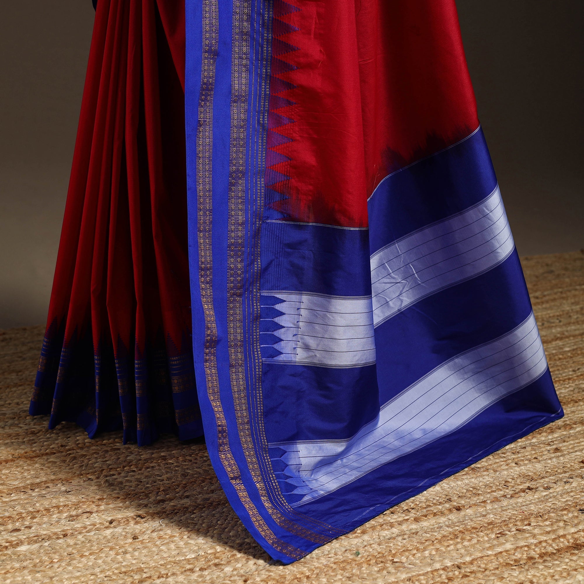 A real silk saree will have slight variations in texture uniformity, which are quite noticeable.