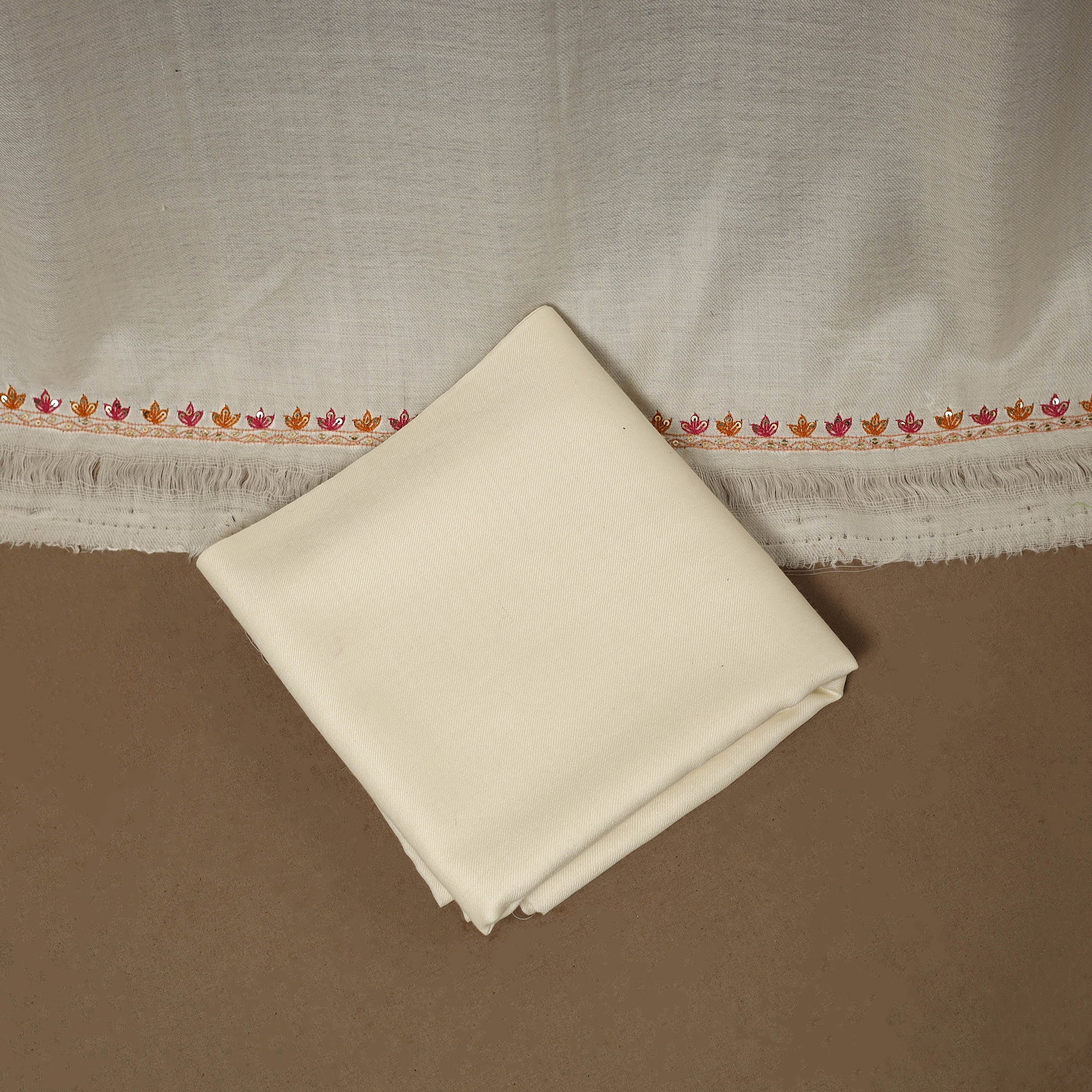 3pc unstitched dress material is ideal for elegant winter wear. Crafted from fine merino wool, it offers warmth and comfort during colder months. The set includes fabric for the top, bottom and dupatta, enhanced with delicate hand embroidery done by skilled artisans. Perfect for stitching into stylish suits, it suits both casual and festive occasions, making it a graceful choice for cozy winter outfits.