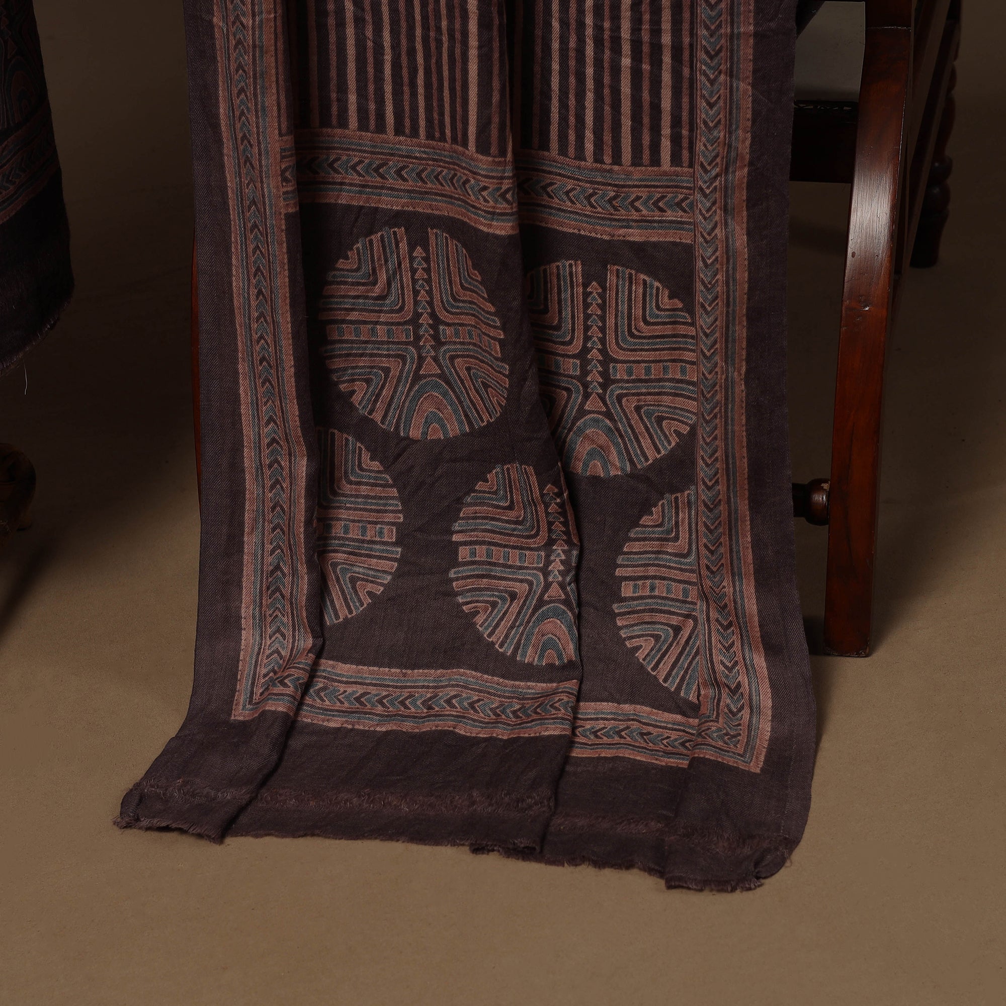 Merino Wool Natural Dyed Hand Block Ajrakh Print 3pc Unstitched Dress Material 01