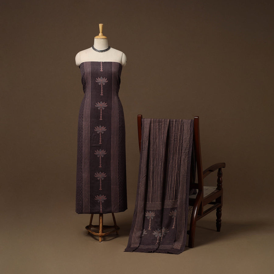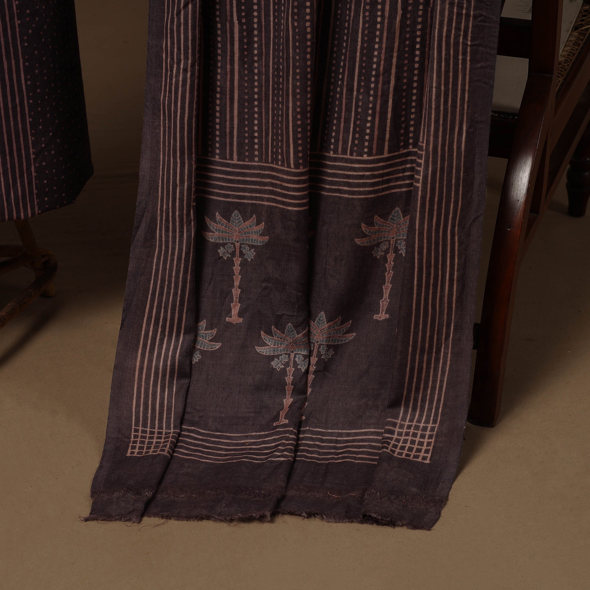 Ajrakh hand block print natural dyed 3pc unstitched dress material, crafted from fine merino wool for the winter season. The fabric is printed using traditional ajrakh techniques practiced by skilled artisans from Kutch, Gujarat. This set includes fabric for a kurta, bottom and dupatta, offering warmth and making it ideal for festive occasions or everyday styling.