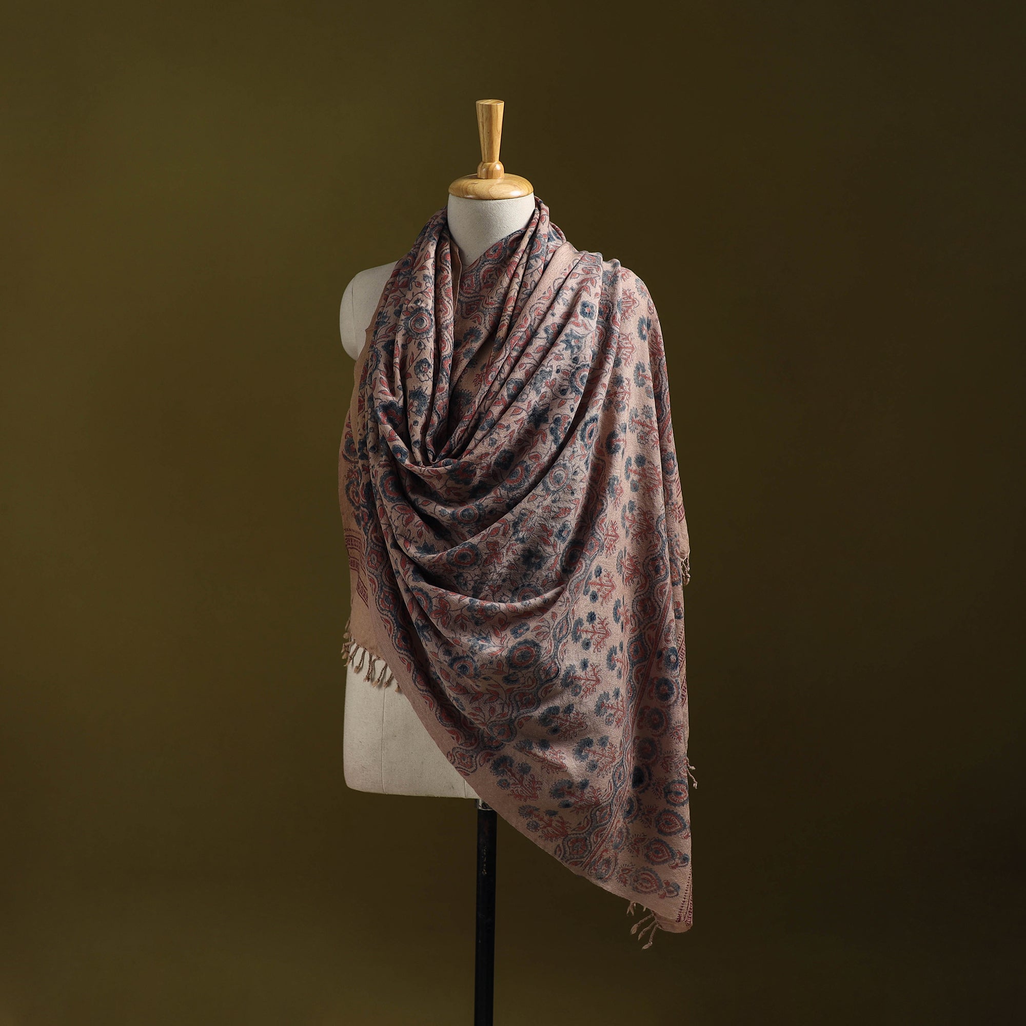 Merino Wool Natural Dyed Handwoven Hand Block Ajrakh Print Shawl 02