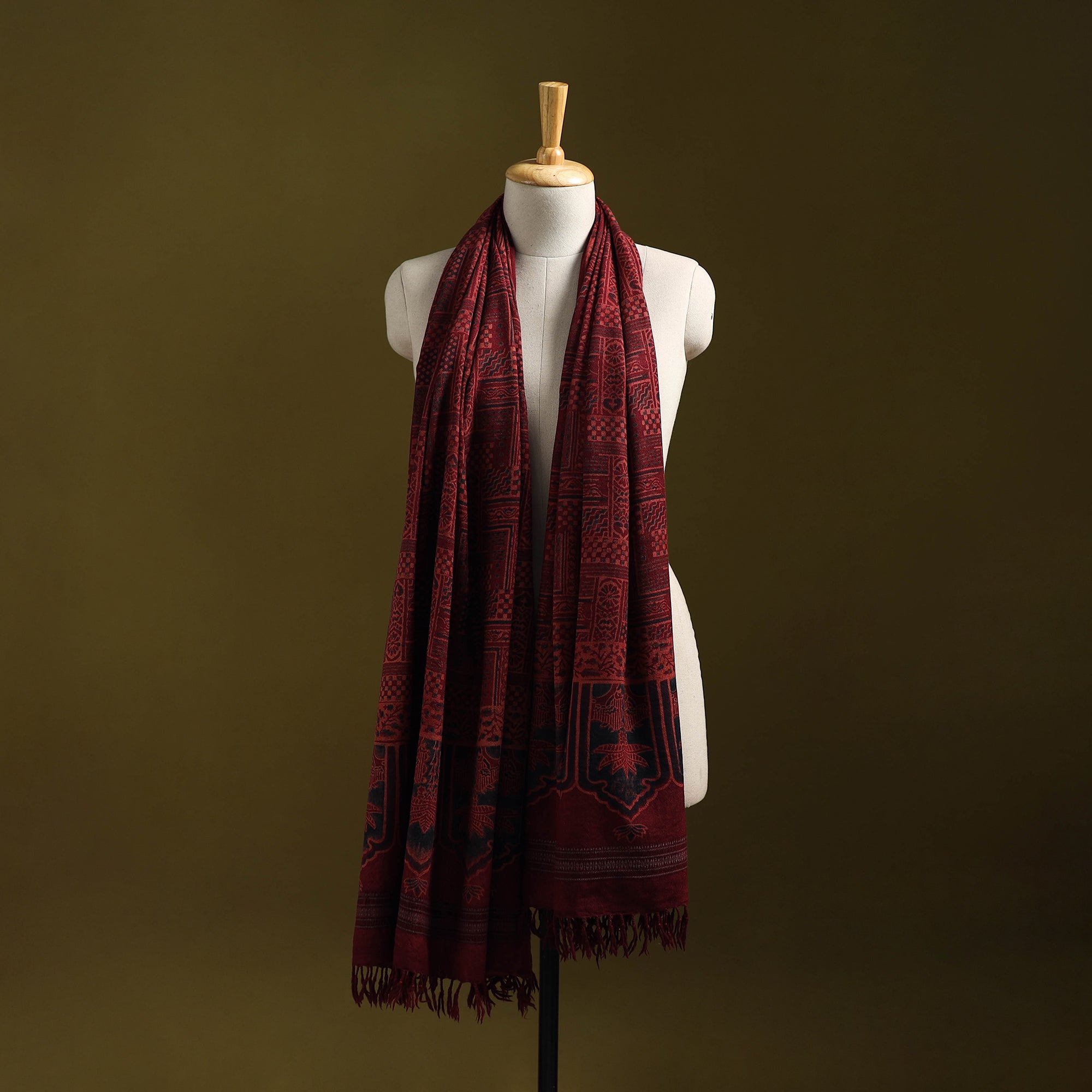 Ajrakh traditional hand block print handwoven natural dyed merino wool shawl is created using long-practiced dyeing and printing techniques from Kutch, Gujarat. Designed for the winter season, the wool offers consistent warmth while remaining comfortable for everyday wear. The intricate Ajrakh patterns bring a refined, understated elegance, making it a thoughtful choice for those who appreciate culturally rooted textiles in their winter wardrobe.