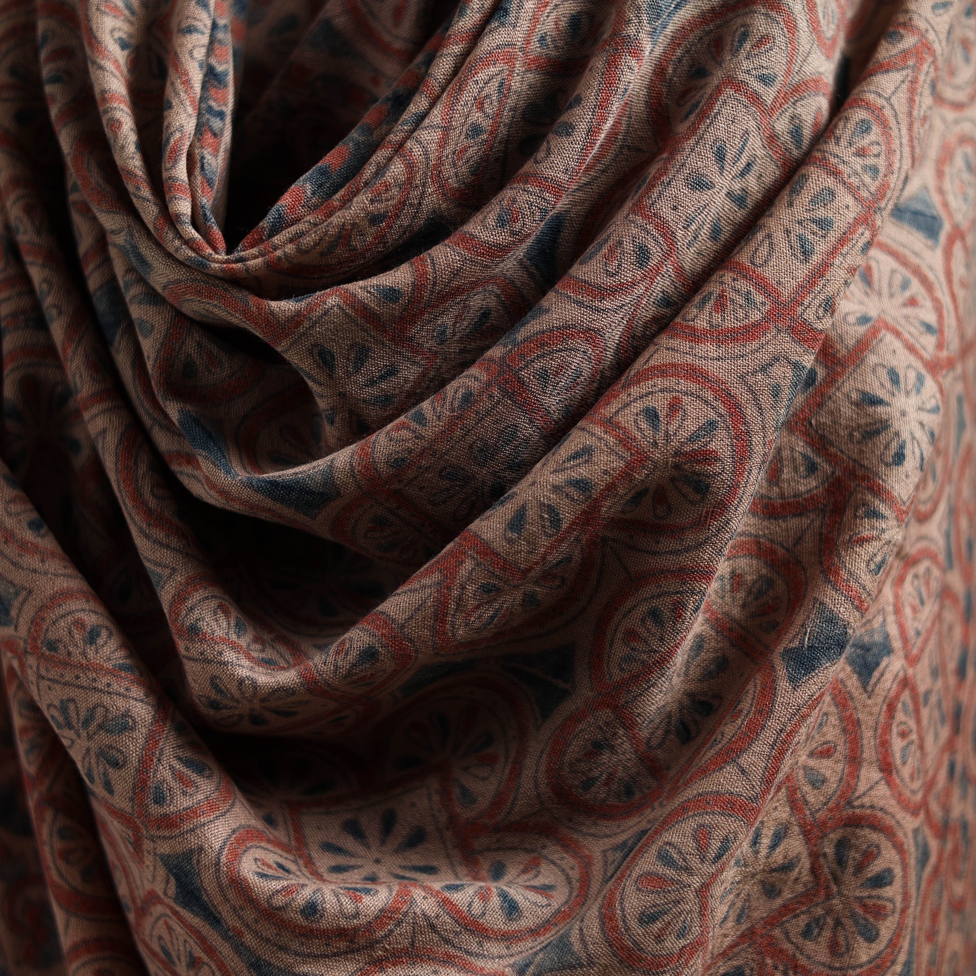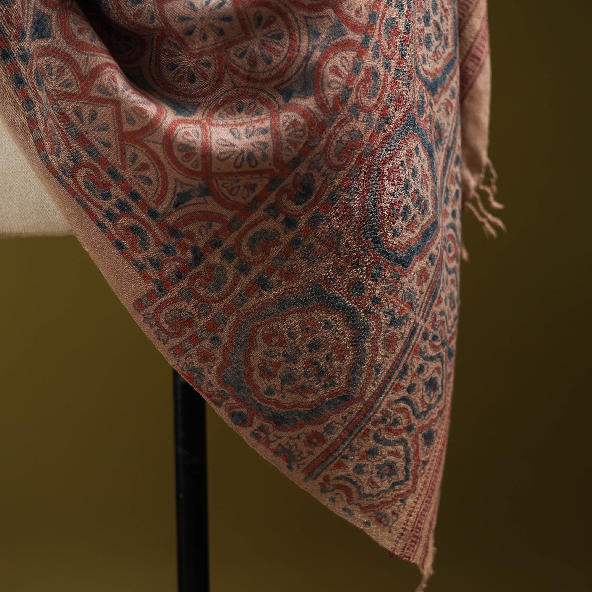 Merino Wool Natural Dyed Handwoven Hand Block Ajrakh Print Shawl 17