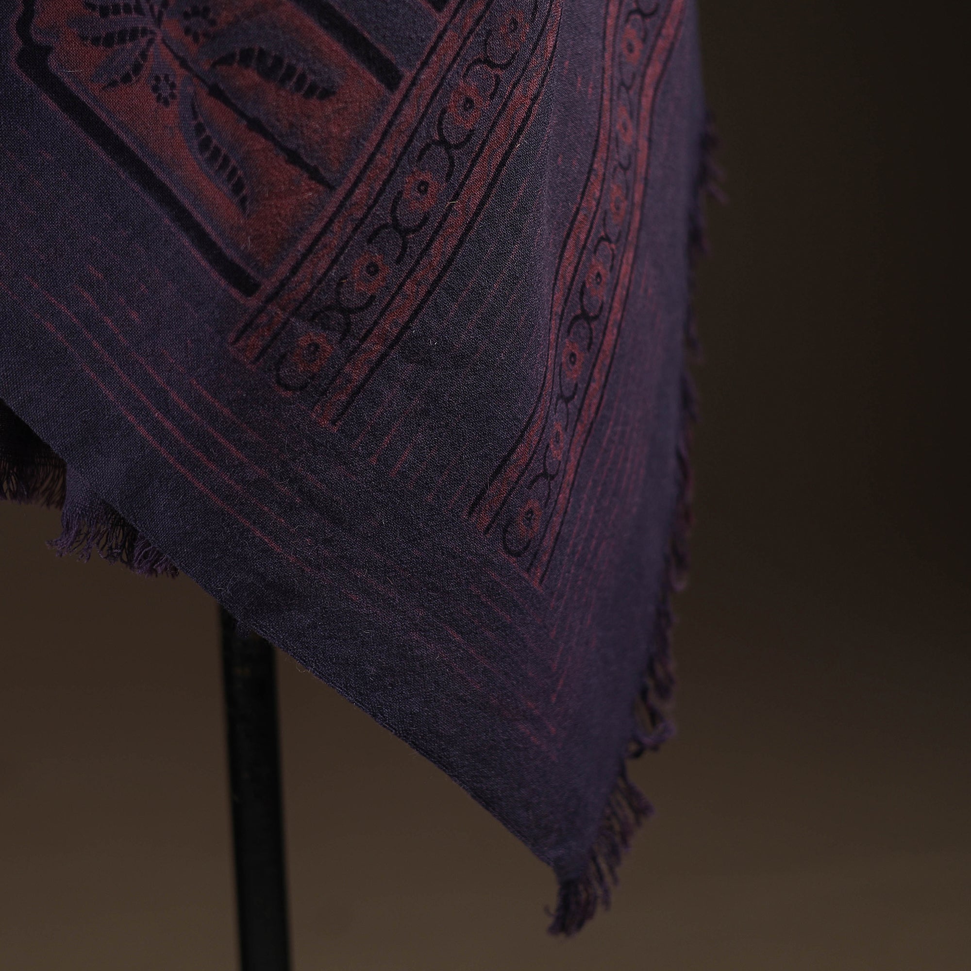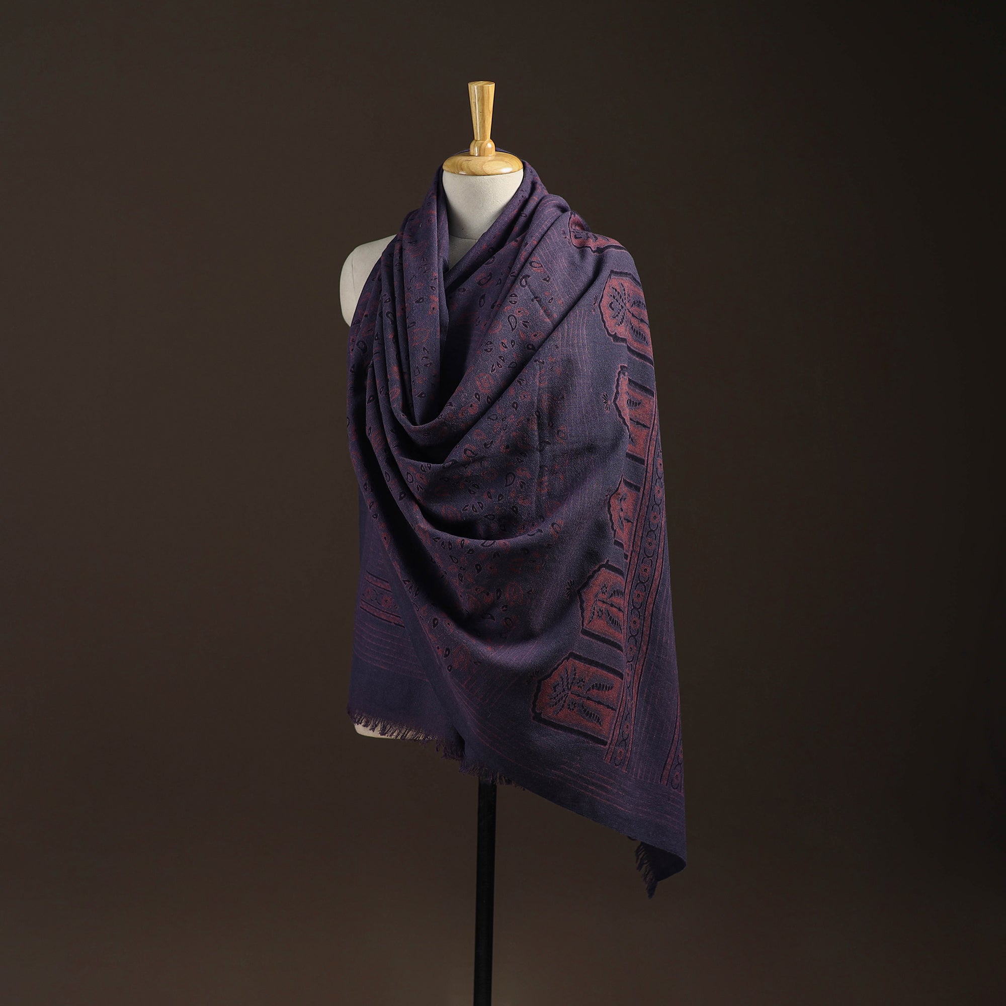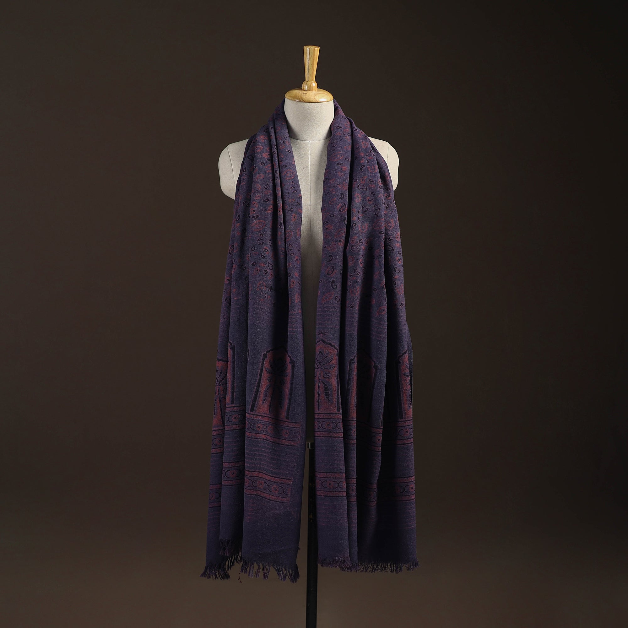 Blue ajrakh traditional block print merino wool shawl, made using natural dyes and long-practiced techniques by Harsh from Kutch, Gujarat. Handwoven for the winter season, the wool provides steady warmth and feels comfortable for daily use. Its detailed design adds a clean, elegant look, making it a thoughtful choice for anyone who enjoys culturally rooted textiles for winter wear.