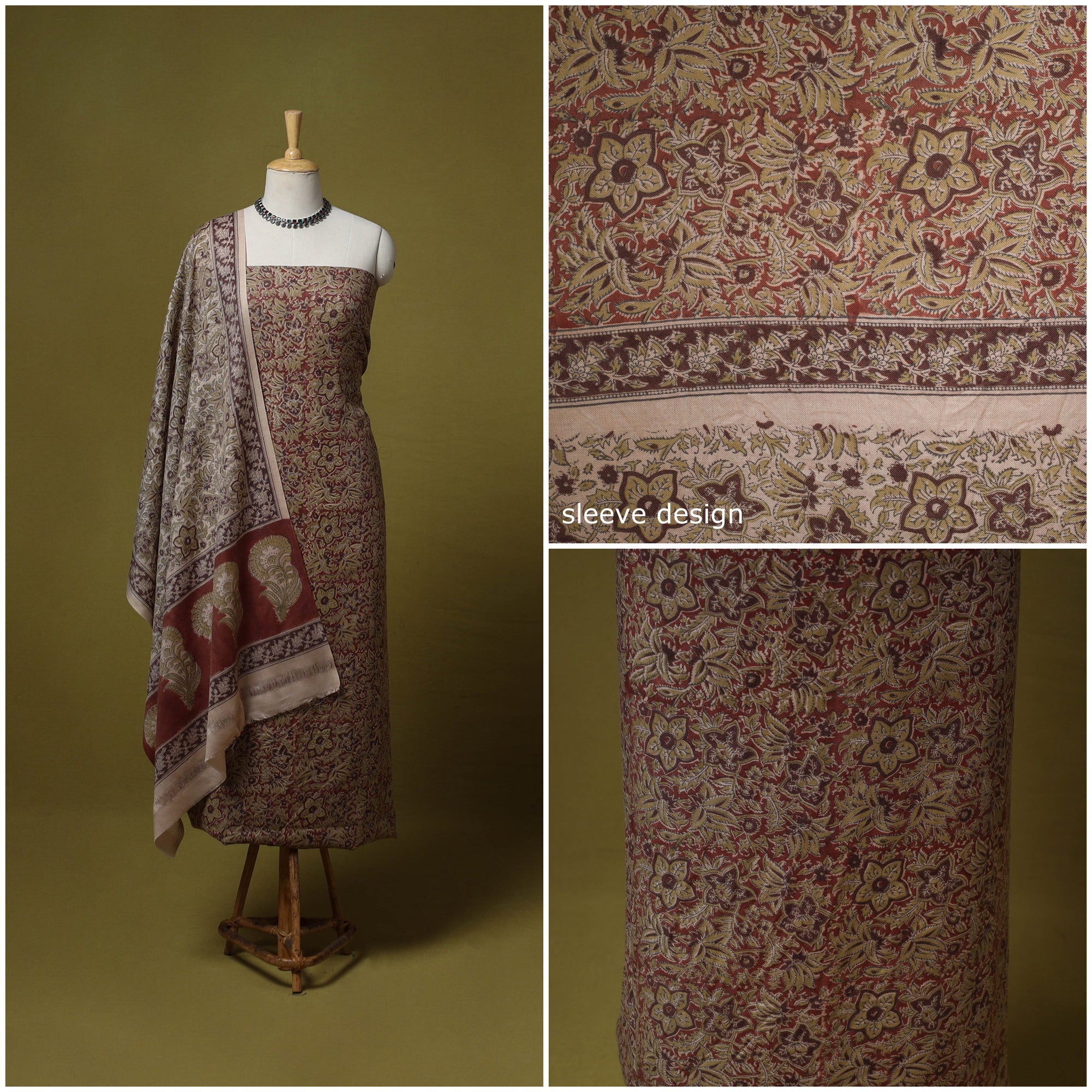 • Merino wool pedana kalamkari 3pc unstitched dress material