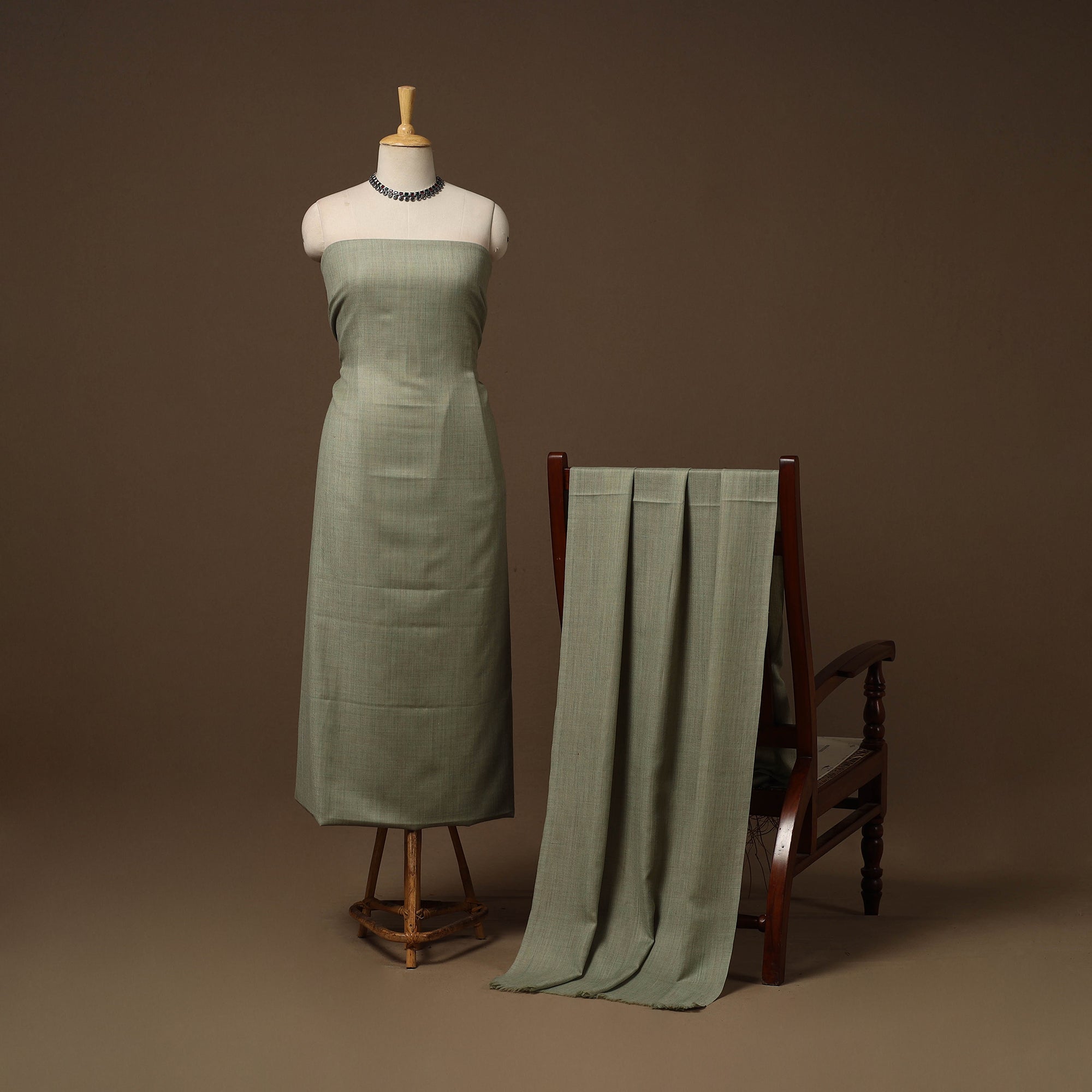 Green plain 3pc unstitched dress material is ideal for elegant winter wear. Made from fine merino wool, it offers warmth and comfort. The set includes fabric for the top, bottom and dupatta. Perfect for stitching into stylish suits, it works well for both casual and festive occasions, making it a great choice for graceful and cozy winter outfits.