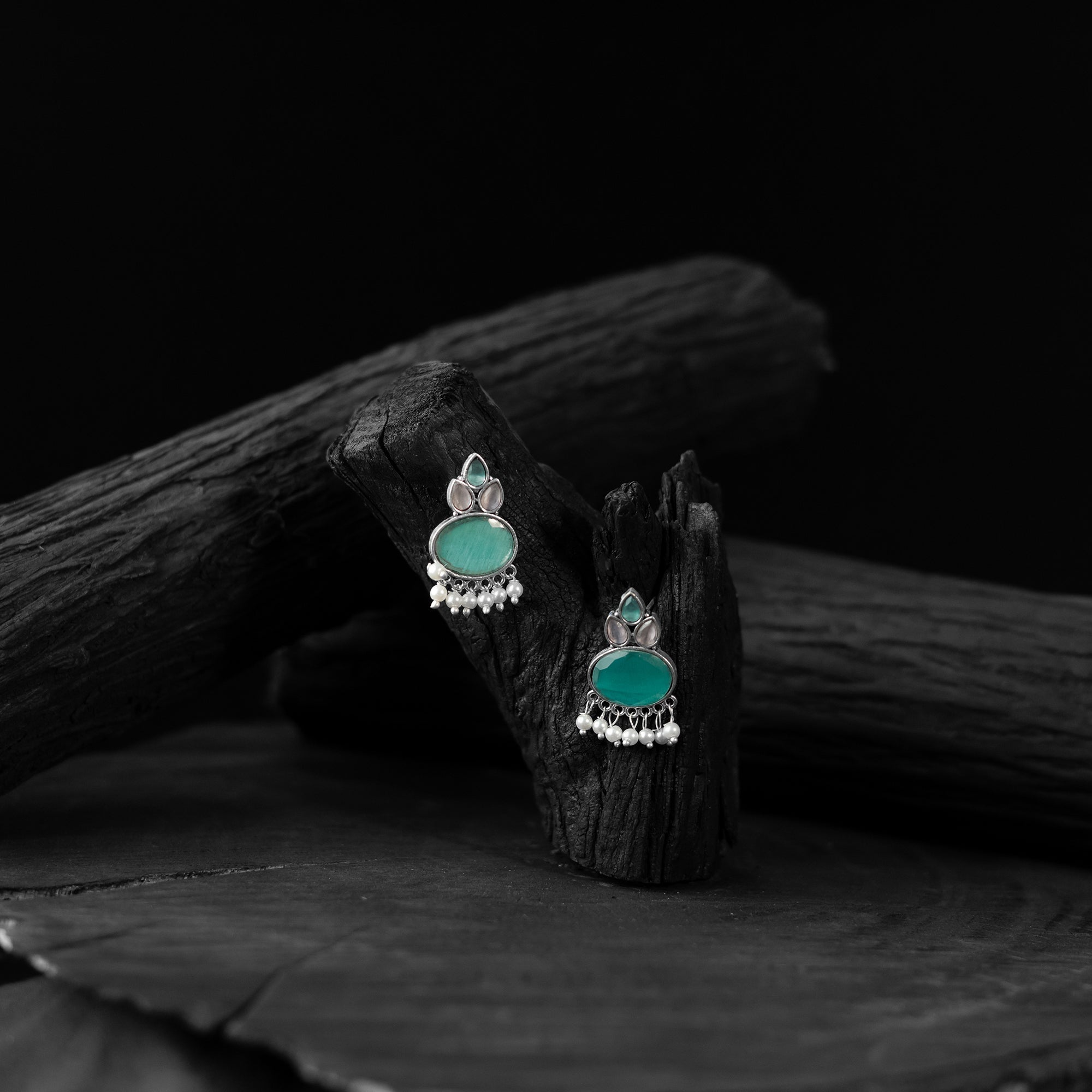 Oxidised handcrafted mint green earrings made with a blend of metal, stones, pearls, beads, and fine detailing. Perfect for festive occasions, weddings, casual outings, office wear, or vacations. Their elegant black and silver tones pair beautifully with everything from casual jeans and flowy dresses to chic office ensembles. A meaningful gift for mother, sister, wife, or girlfriend adding a beautiful touch of tradition to every moment.