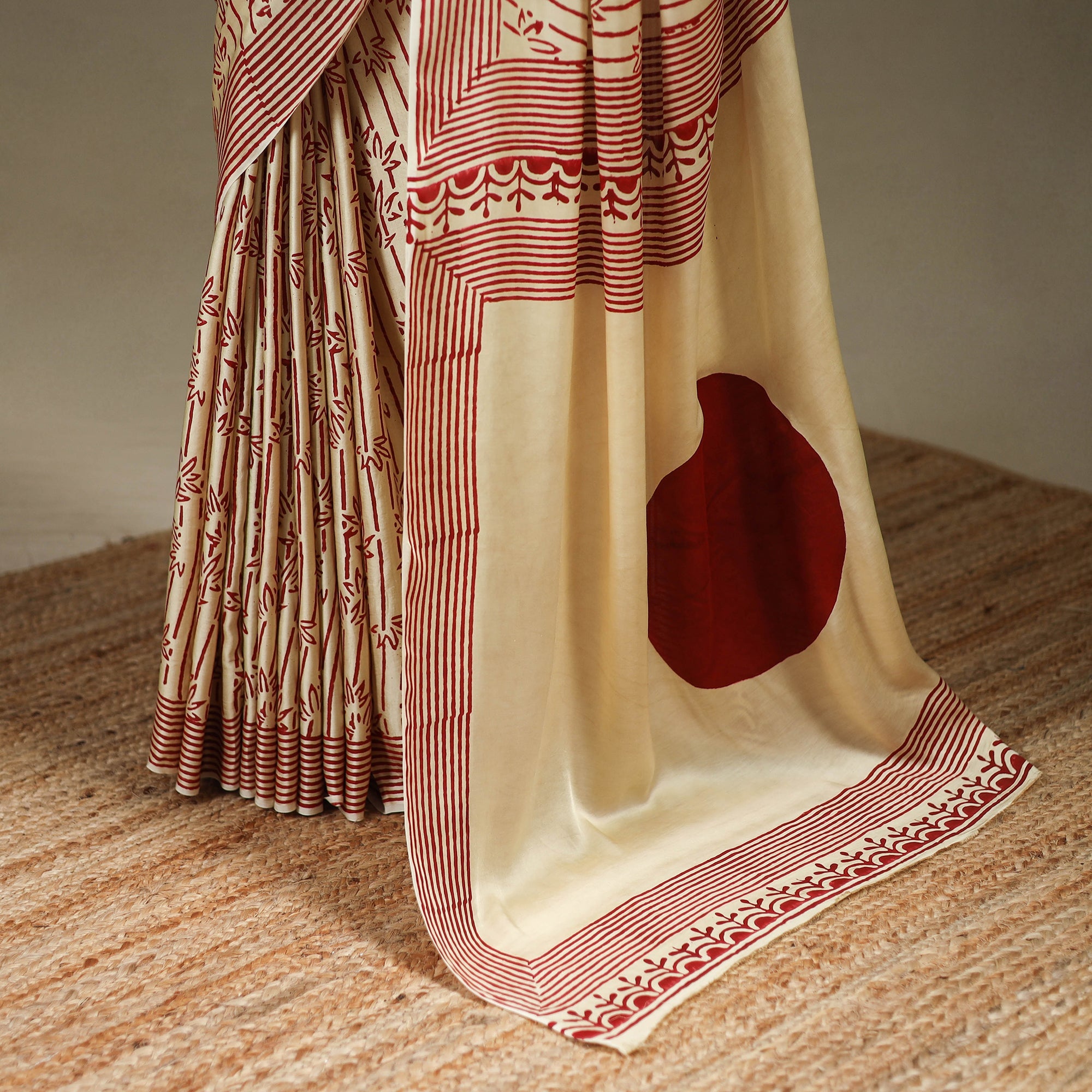 Beige - Modal Silk Hand Block Print Bagru Saree 05