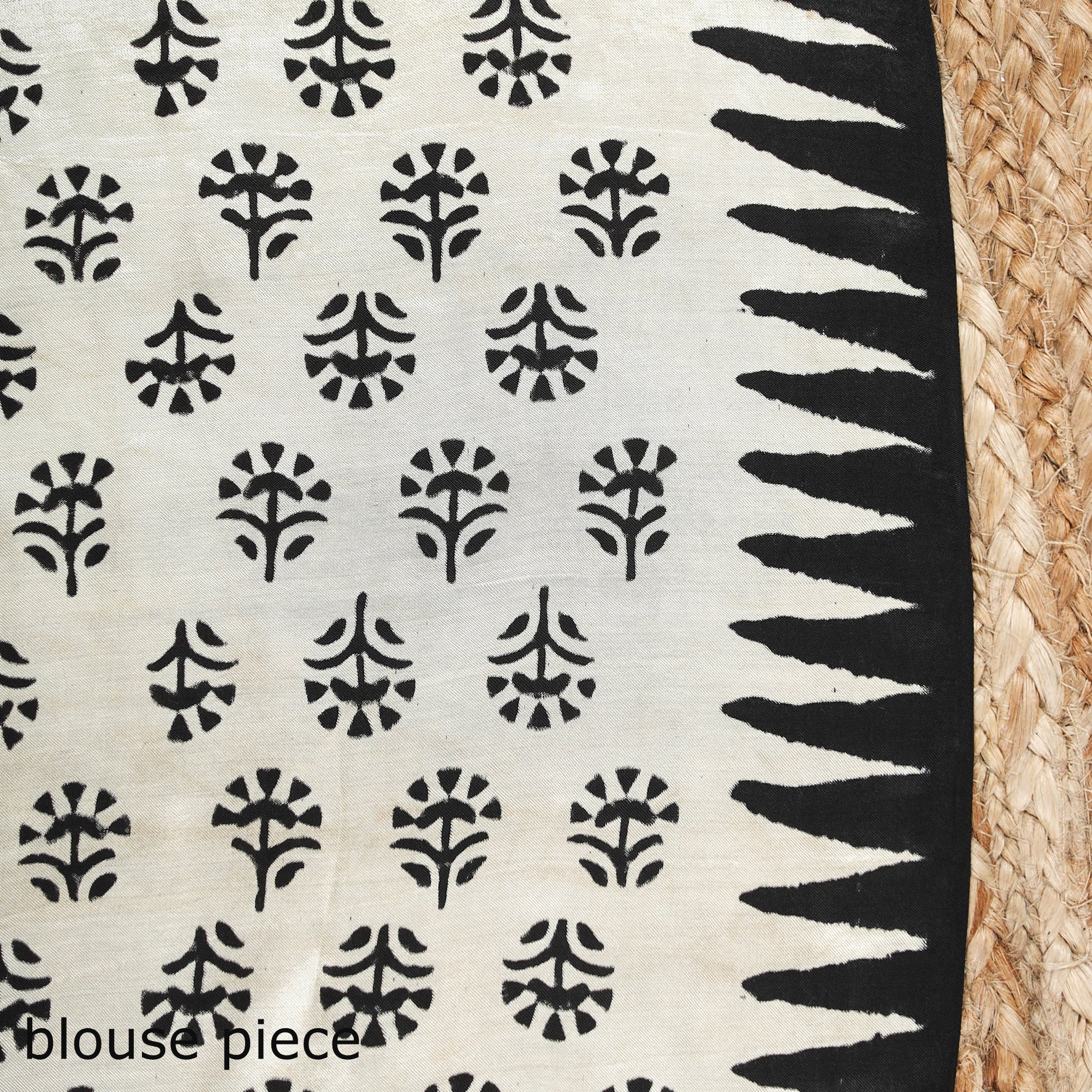 Beige - Modal Silk Hand Block Print Bagru Saree 11