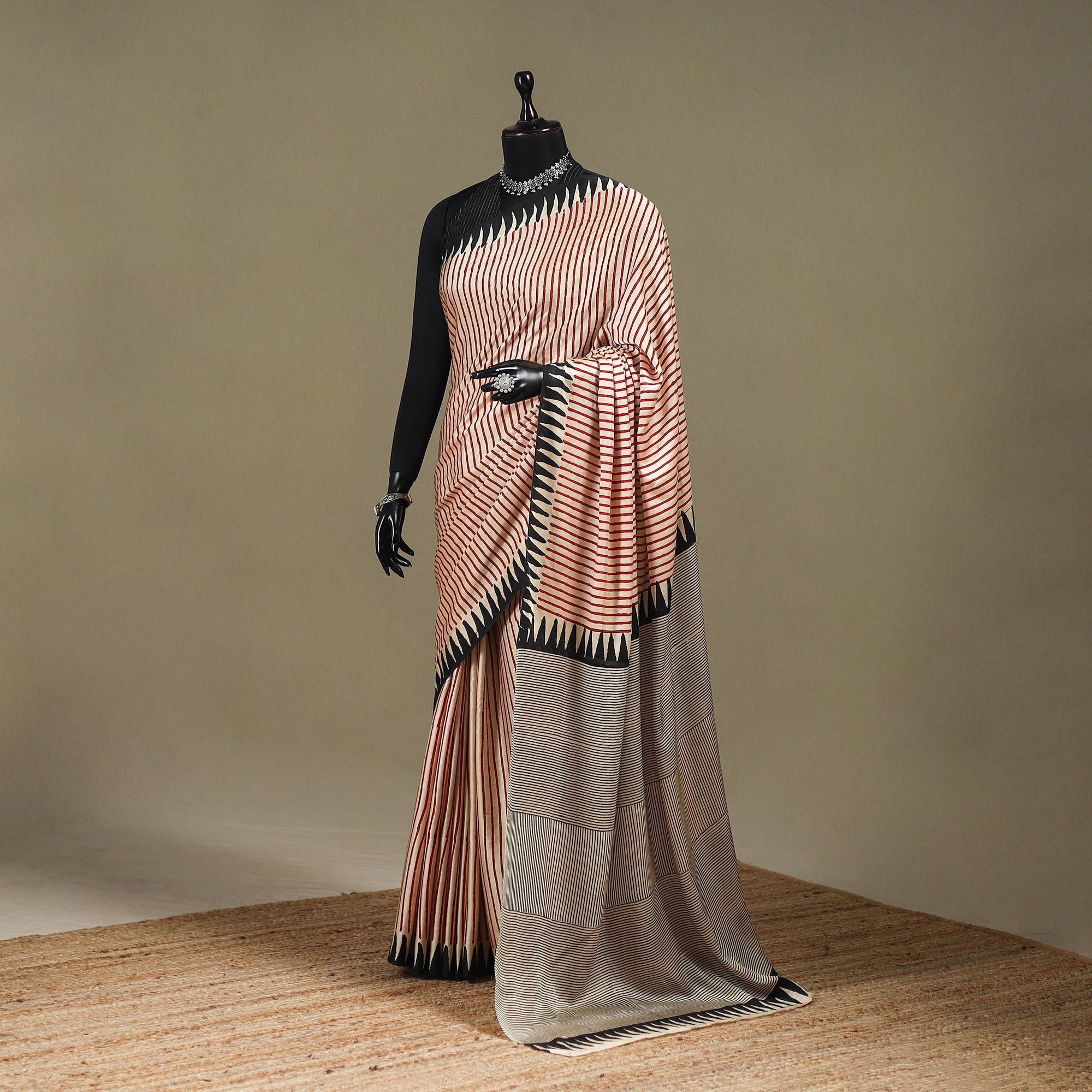 Beige - Modal Silk Hand Block Print Bagru Saree 05