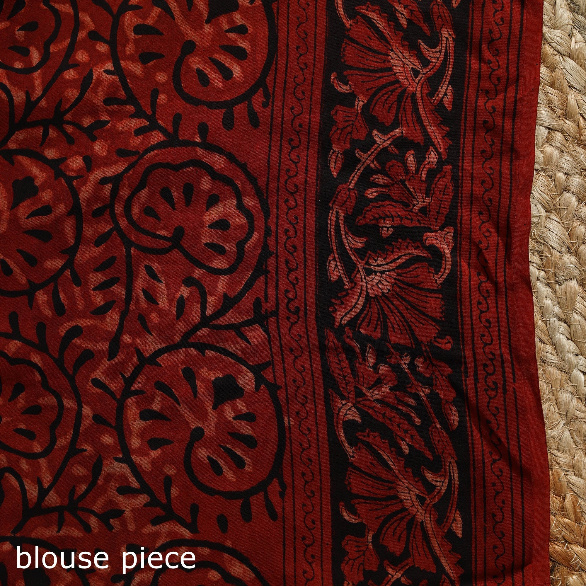 This red modal silk saree features traditional bagru block printing, known for its bold patterns. Made using hand-carved wooden blocks and natural dyes, it drapes smoothly and feels soft to wear. Originating from Bagru, a village near Jaipur in Rajasthan, this printing style has been practiced for generations. Suitable for both everyday wear and special occasions, it beautifully blends comfort and style.