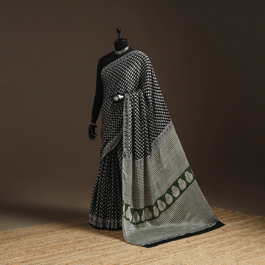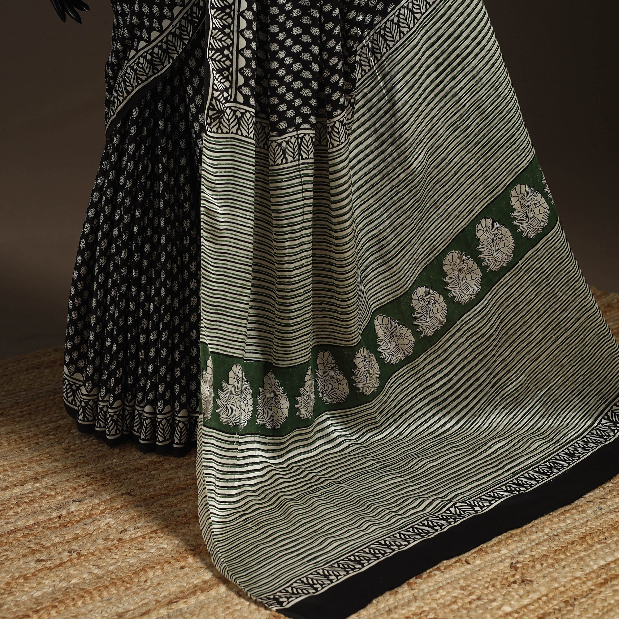 Black - Modal Silk Hand Block Print Bagru Saree 30