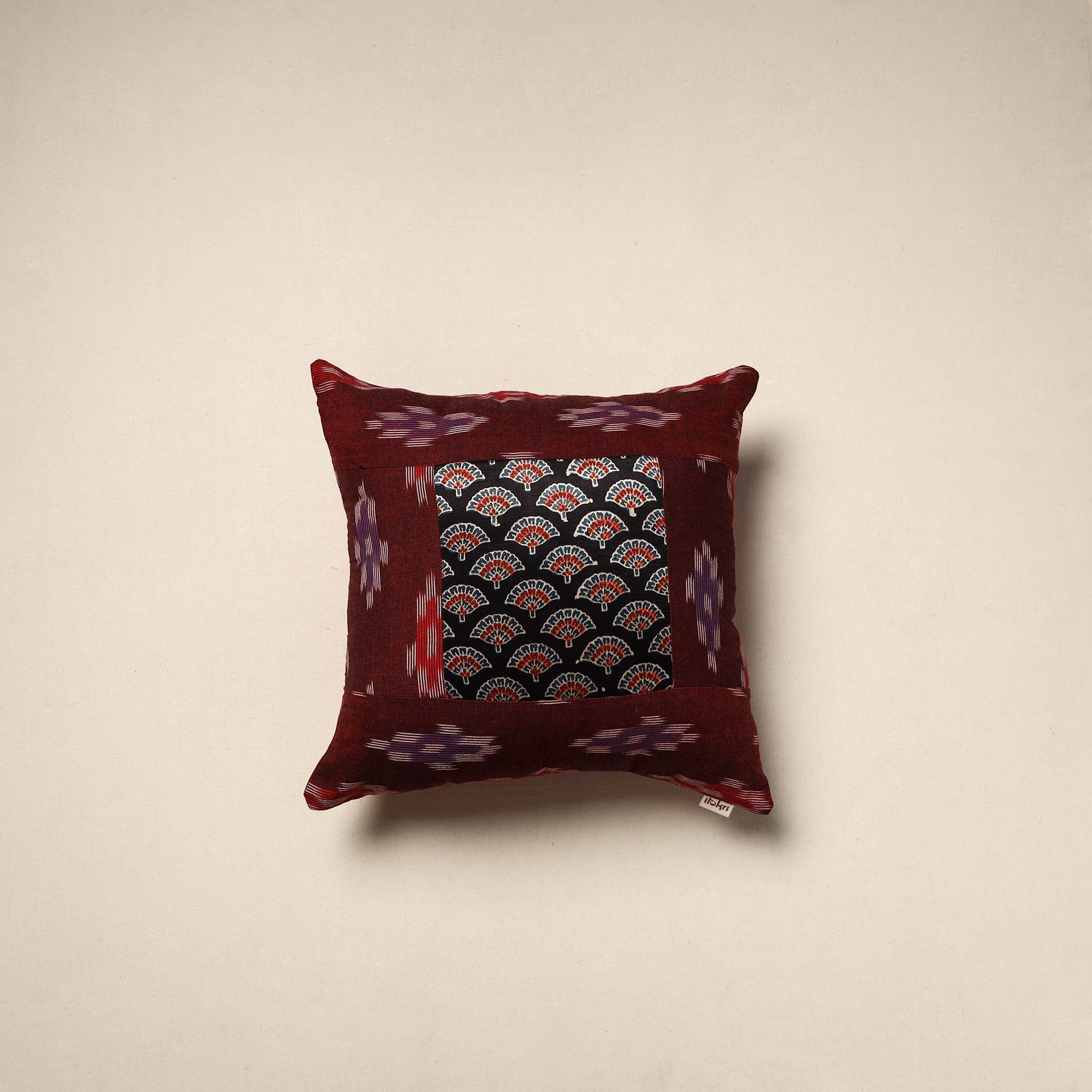 Elevate your home decor with a maroon modal silk patch pochampally ikat cotton cushion cover. Its beautiful patterns and smooth texture add a stylish, cultural touch to any room. Whether placed on sofas, chairs, or beds, this cushion cover brings a nice mix of colour and elegance making your living space feel warm and inviting.
