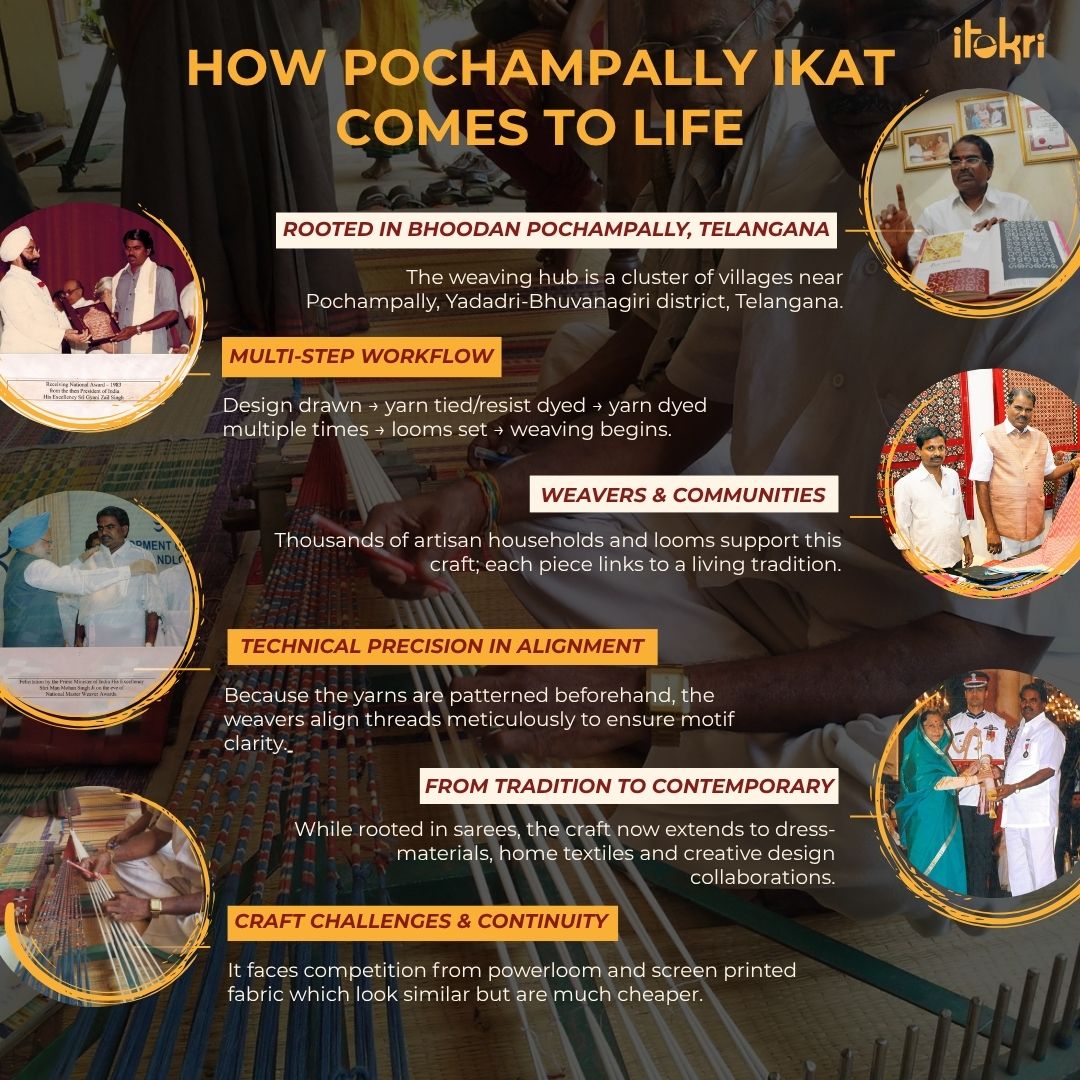Pochampalli Ikat is a type of ikat produced in the city of Bhoodan Pochampally, Telangana Province. This absolutely beautiful fabric features traditional geometric patterns in a unique washed design and has a nice old-world charm.