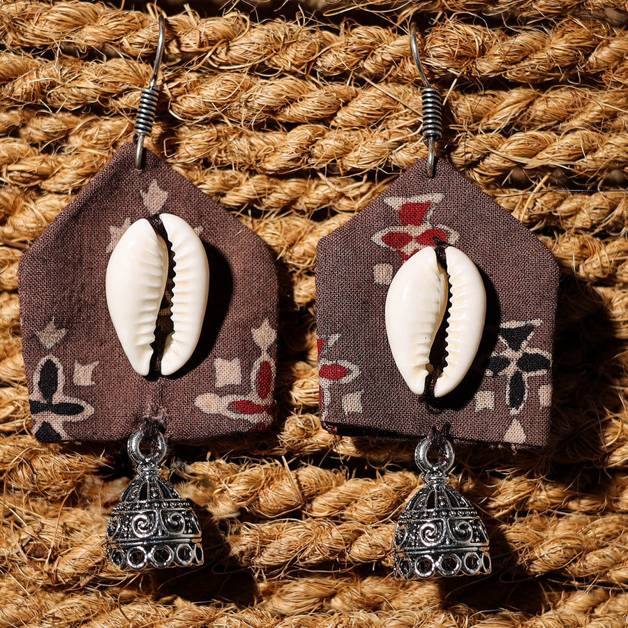 Enhance your style with our brown handcrafted gs with shell work fabart earrings. Intricately designed with fabrics, shell & german silver. Perfect for casual outings or festive celebrations they make a versatile addition to any jewelry collection.
