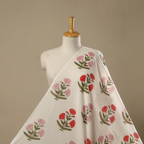 White pure mul cotton mughal butta hand block print sanganeri fabric is crafted by skilled artisans in Sanganer, Jaipur, using traditional wooden blocks. The mughal butta motifs are inspired by floral patterns popular during the Mughal era and are known for their fine detailing. This printing tradition is over 500 years old and has been passed down through generations. Made from lightweight, breathable mul cotton, the fabric is ideal for kurtas, dresses, tunics and home decor pieces such as cushion covers and curtains.