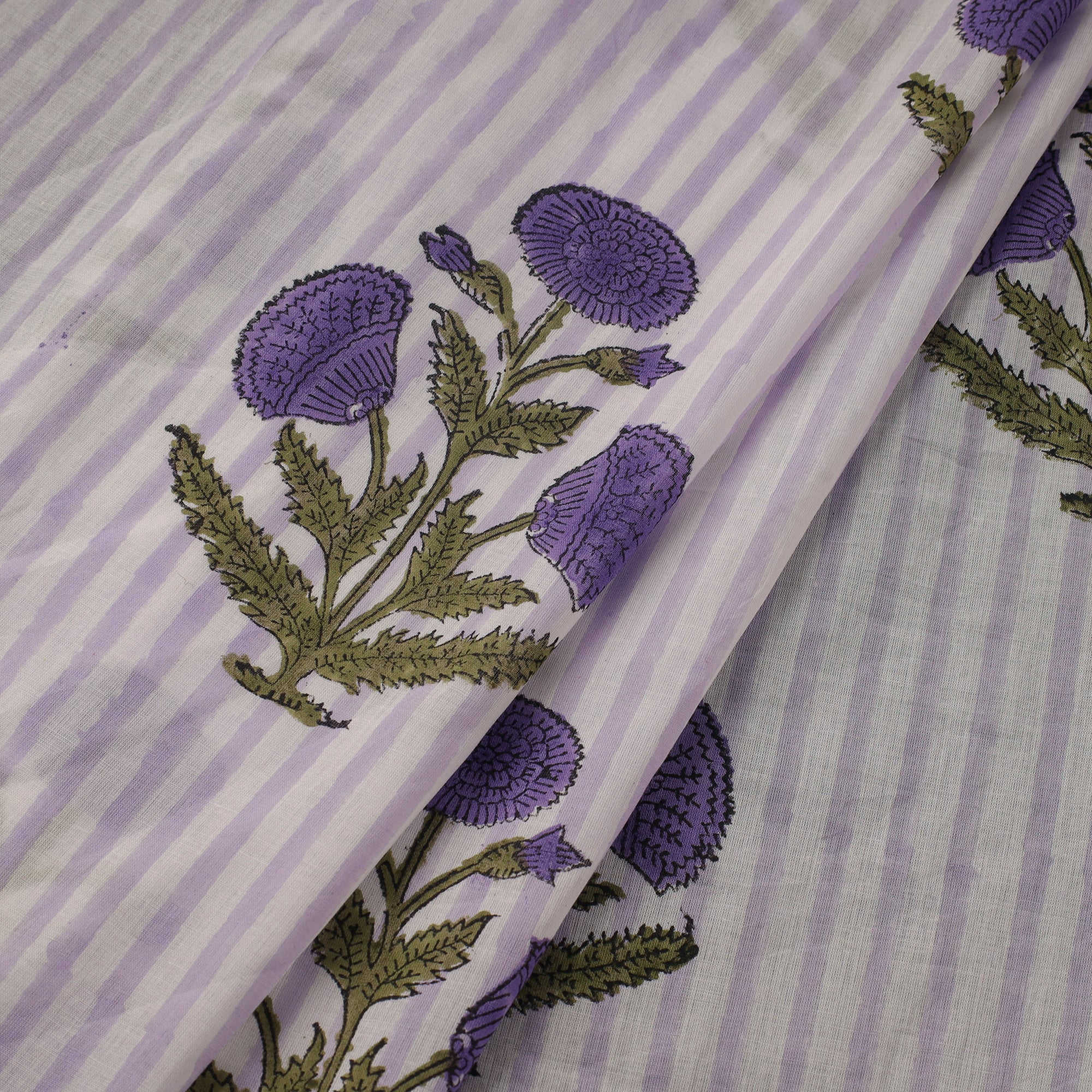• Purple - Mughal Butta Hand Block Print Pure Mul Cotton Sanganeri Fabric 27