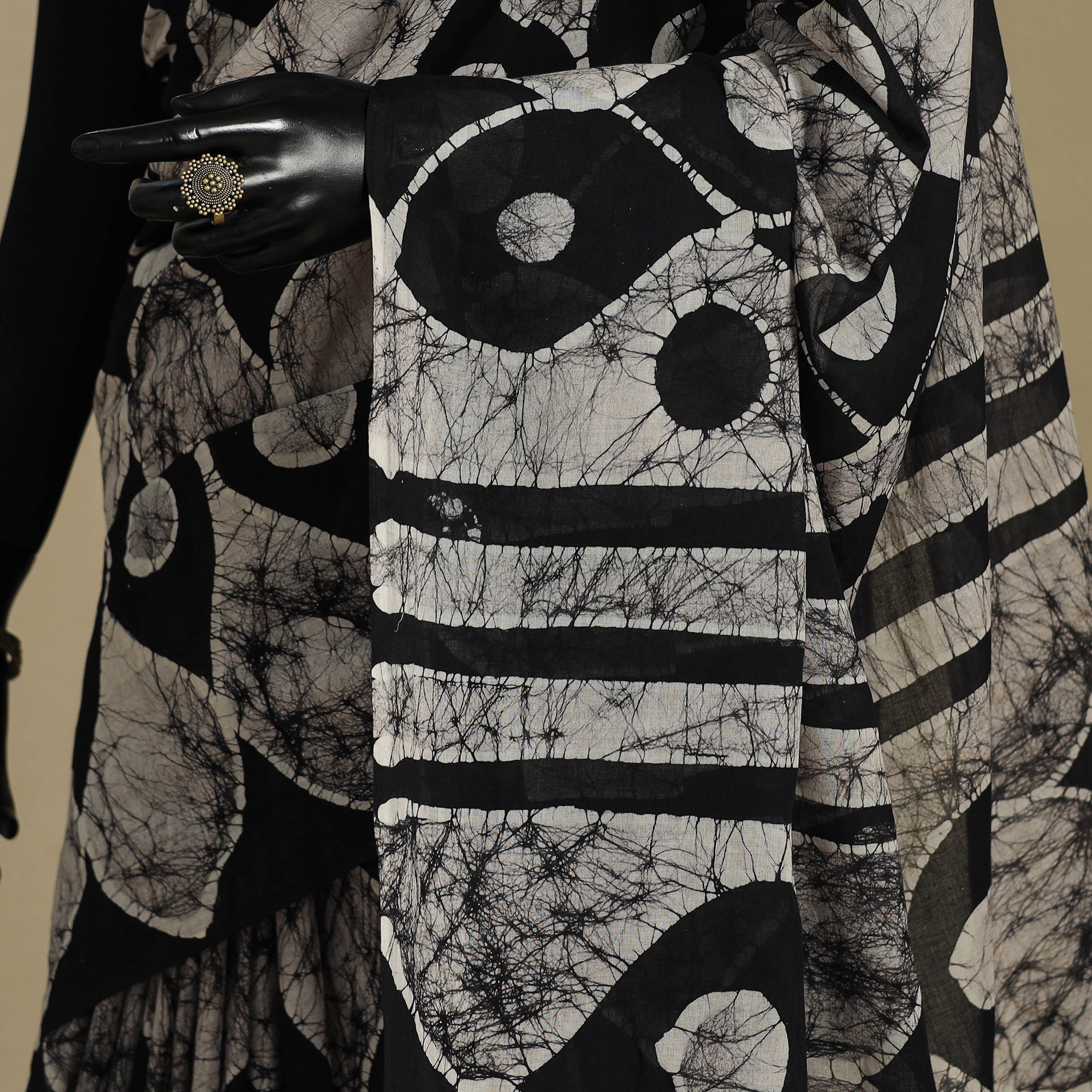 Batik is a very famous technique of wax-resist dyeing applied to whole cloth. The traditional designs and motifs in Indian batik are exceptional. It is a type of resist printing process wherein wax is applied to the fabric in specific areas.