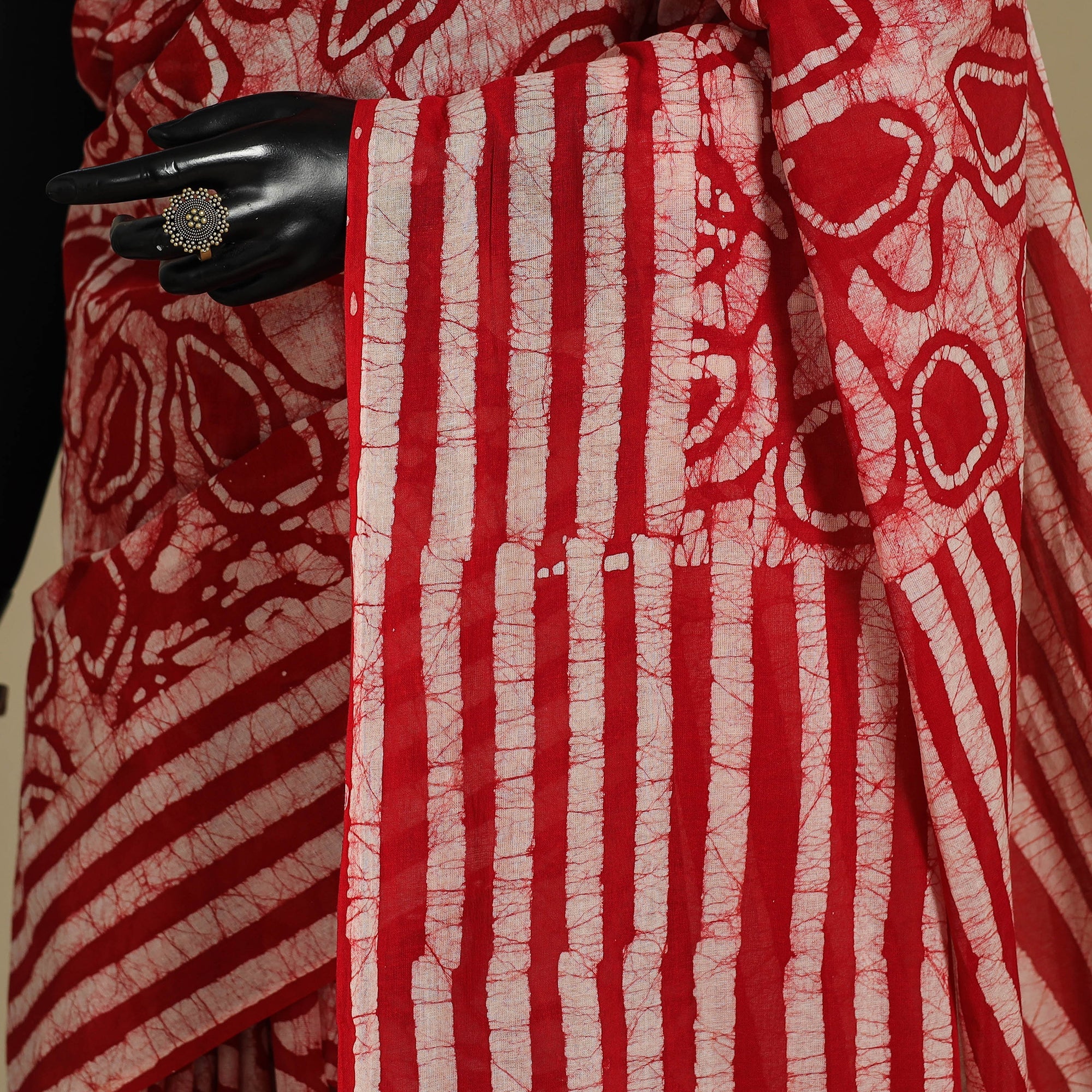This red mul cotton batik print saree is crafted using the traditional wax-resist batik technique, giving it a distinctive appeal. Lightweight and breathable, it ensures ease and comfort all day long, making it ideal for festive occasions, cultural gatherings, or adding a touch of traditional elegance to everyday wear.