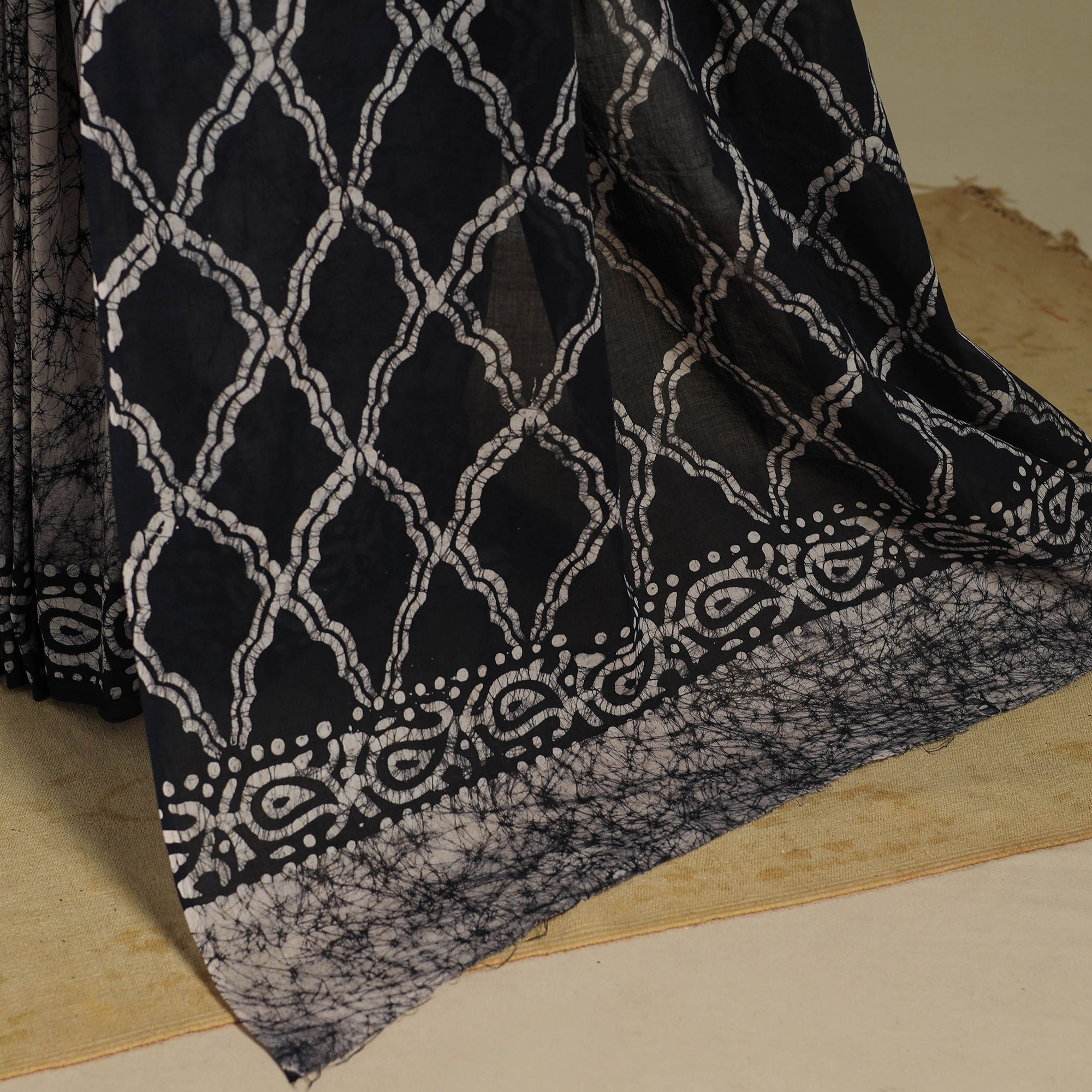 This black mul cotton batik print saree is crafted using the traditional wax-resist batik technique, giving it a distinctive appeal. Lightweight and breathable, it ensures ease and comfort all day long, making it ideal for festive occasions, cultural gatherings, or adding a touch of traditional elegance to everyday wear.