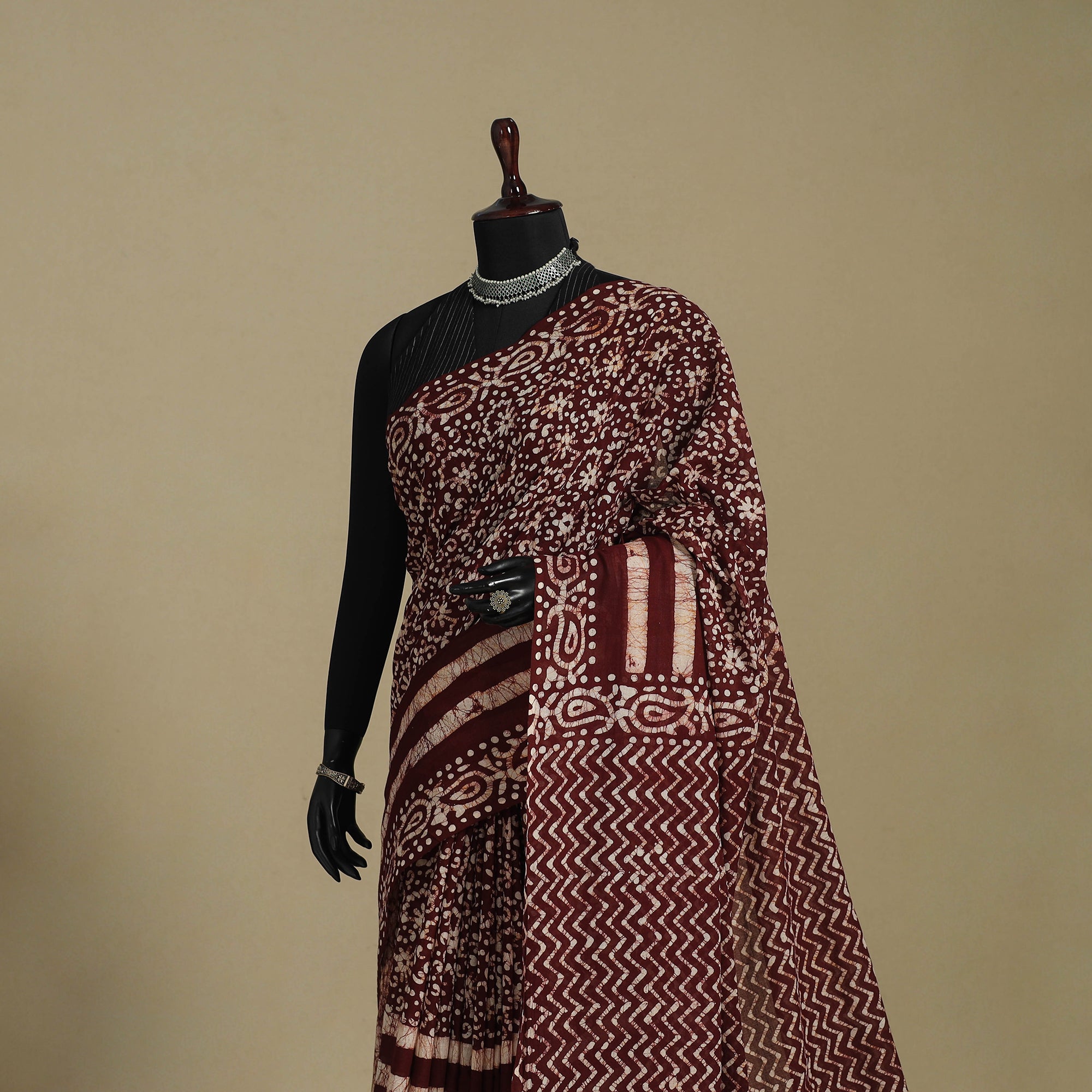 This brown mul cotton batik print saree is crafted using the traditional wax-resist batik technique, giving it a distinctive appeal. Lightweight and breathable, it ensures ease and comfort all day long, making it ideal for festive occasions, cultural gatherings, or adding a touch of traditional elegance to everyday wear.