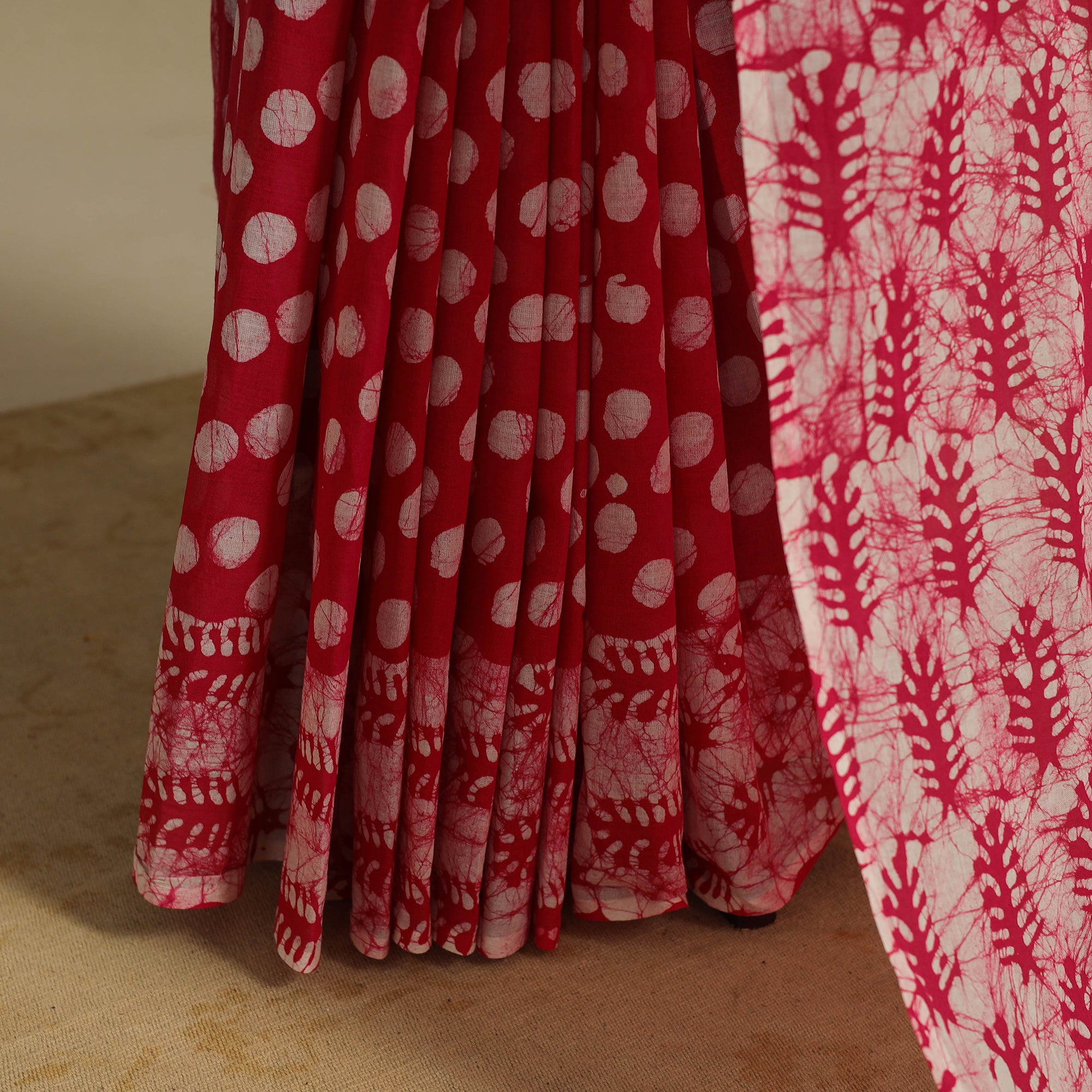 This pink mul cotton batik print saree is crafted using the traditional wax-resist batik technique, giving it a distinctive appeal. Lightweight and breathable, it ensures ease and comfort all day long, making it ideal for festive occasions, cultural gatherings, or adding a touch of traditional elegance to everyday wear.