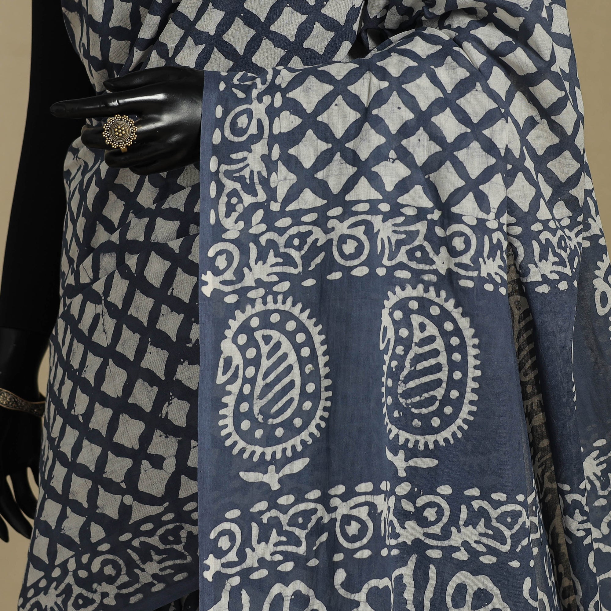 Blue - Kutch Hand Block Batik Print Cotton Fabric 40