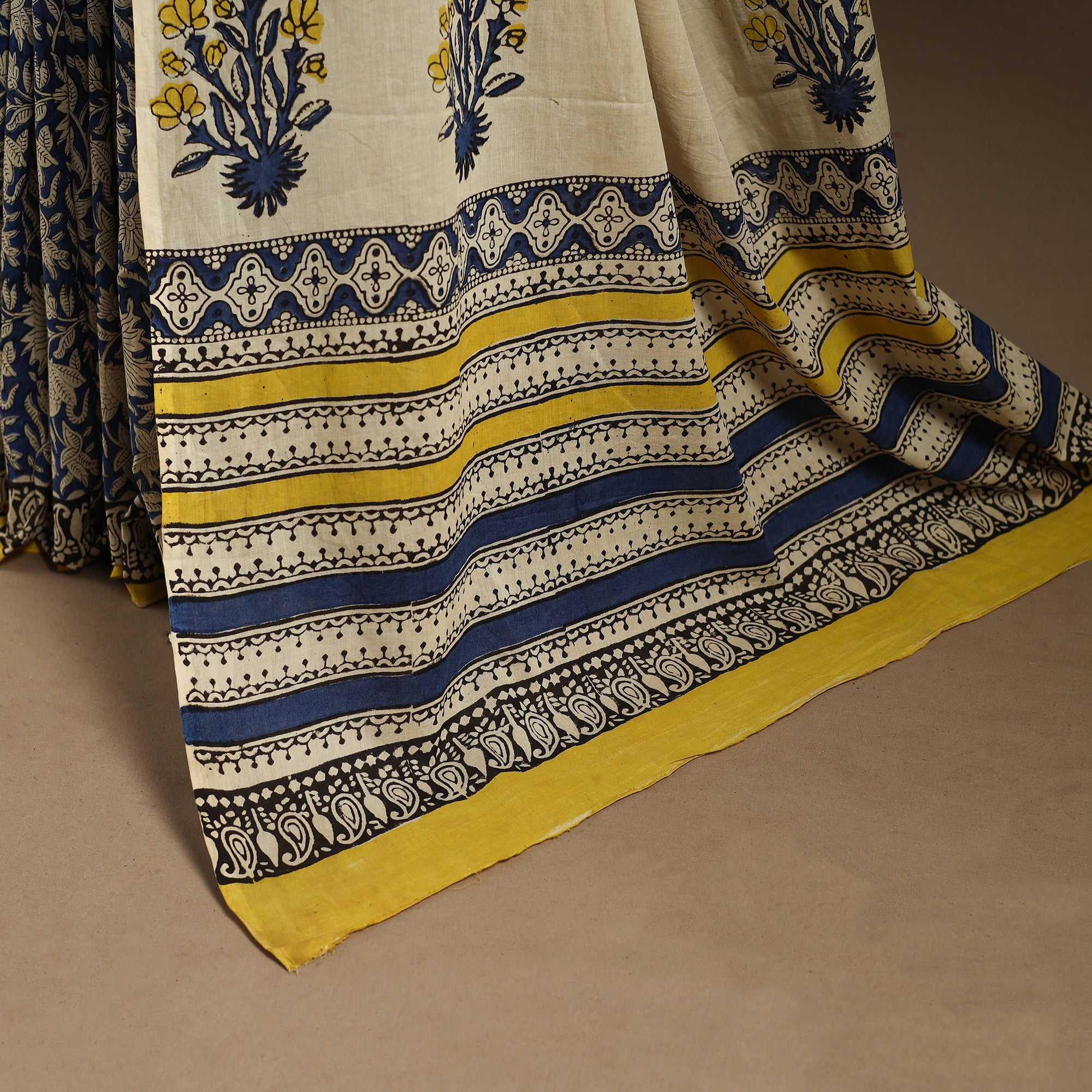 Hand-stamped block prints crafted by artisans using age-old techniques.