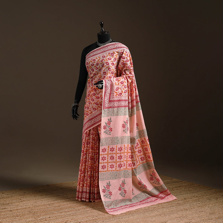 Traditional sanganeri block printing saree, known for its delicate floral motifs and fine detailing, created by skilled artisans of Rajasthan. Using hand-carved wooden blocks, the patterns are printed with precision and care. The mul cotton saree keeps it breathable and comfortable for long hours. Ideal for everyday elegance, workwear or subtle festive dressing.