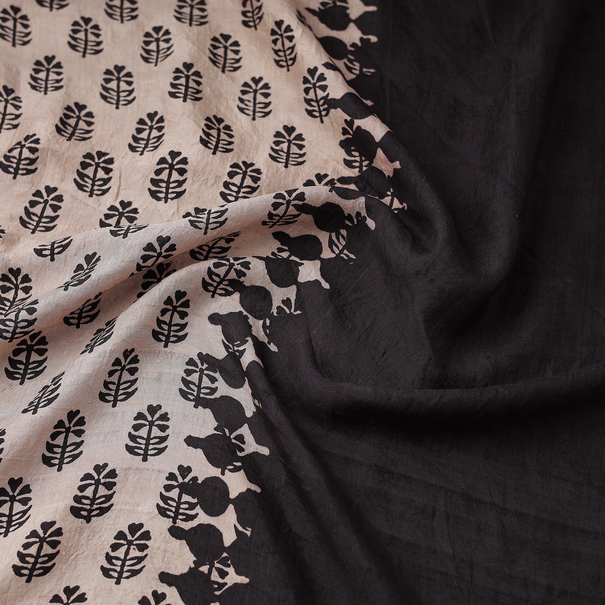 Beauty of tradition with beige mulberry silk bagh print fabric. Hand block printed by Umar Faruk Khatri using natural dyes, it features intricate patterns rooted in the rich heritage of Bagh, Madhya Pradesh. Lightweight and elegant, this fabric is perfect for crafting sarees, suits, dupattas, or contemporary outfits, adding a touch of timeless artistry to your wardrobe.