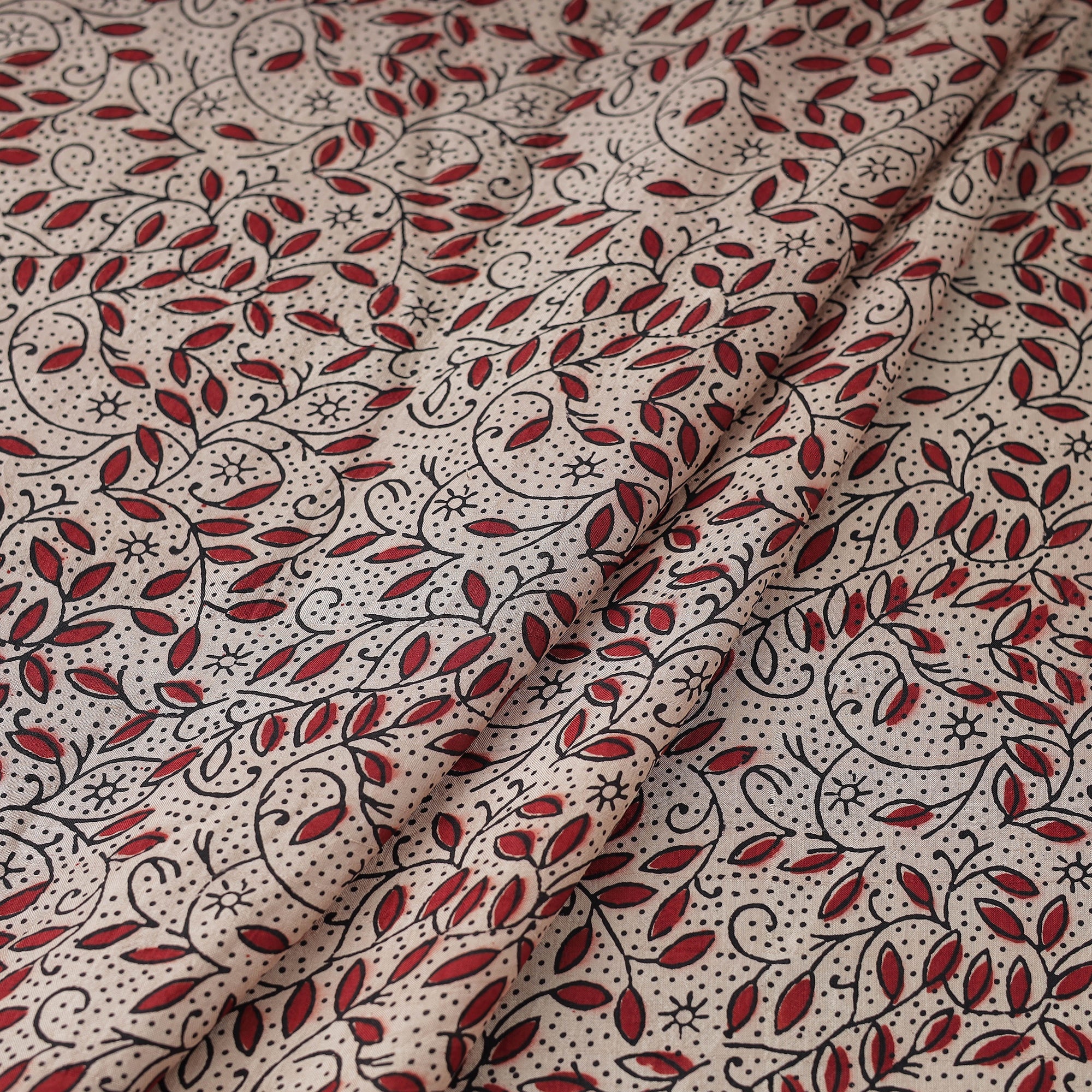 Beauty of tradition with beige mulberry silk bagh print fabric. Hand block printed by Umar Faruk Khatri using natural dyes, it features intricate patterns rooted in the rich heritage of Bagh, Madhya Pradesh. Lightweight and elegant, this fabric is perfect for crafting sarees, suits, dupattas, or contemporary outfits, adding a touch of timeless artistry to your wardrobe.