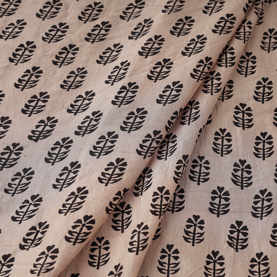 Beauty of tradition with beige mulberry silk bagh print fabric. Hand block printed by Umar Faruk Khatri using natural dyes, it features intricate patterns rooted in the rich heritage of Bagh, Madhya Pradesh. Lightweight and elegant, this fabric is perfect for crafting sarees, suits, dupattas, or contemporary outfits, adding a touch of timeless artistry to your wardrobe.