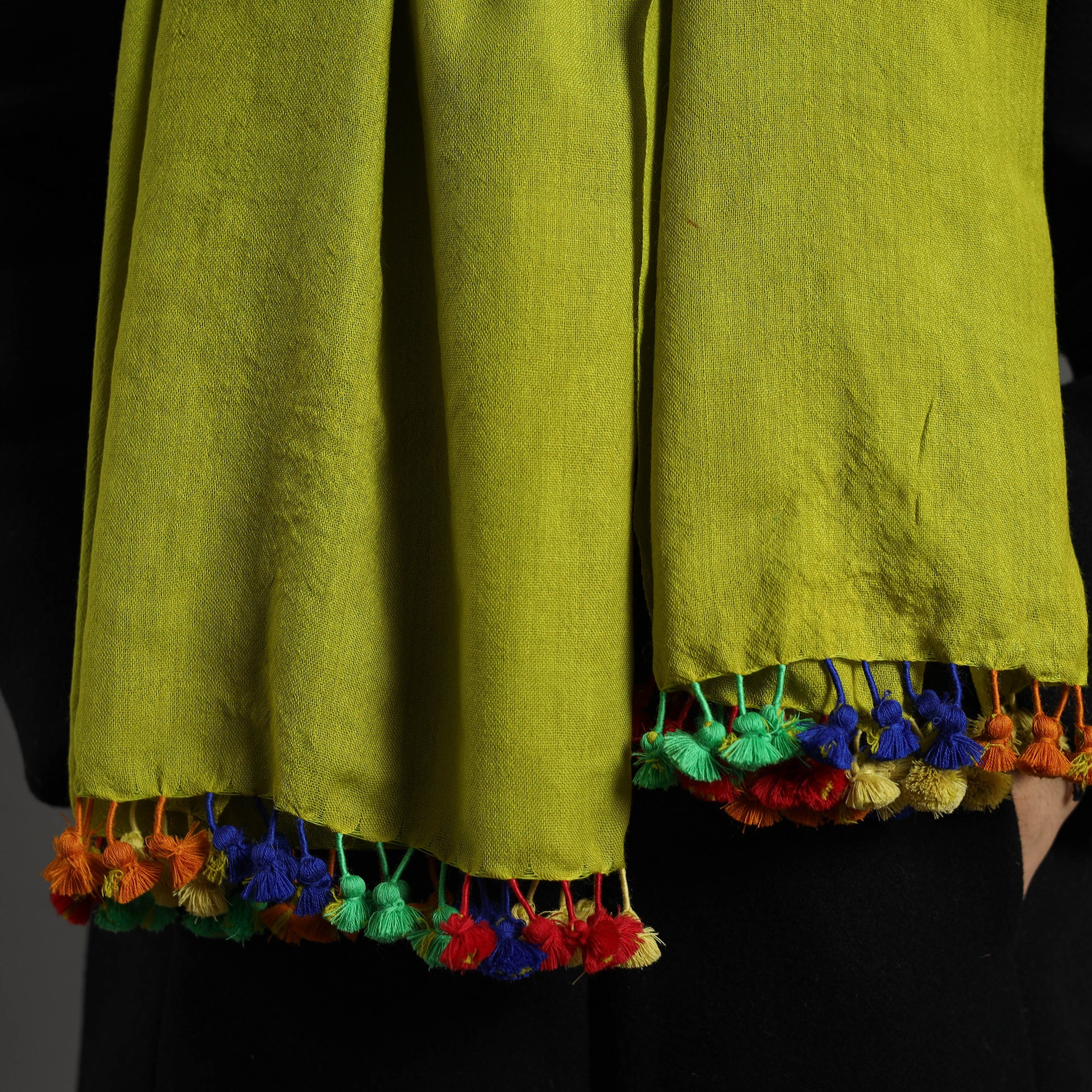 Wrap yourself in warmth and style with this green pure woollen multi fuman stole from kutch. Featuring a soft texture, it combines traditional craftsmanship with modern utility. Ideal for chilly days, this versatile stole pairs beautifully with both ethnic and contemporary outfits.