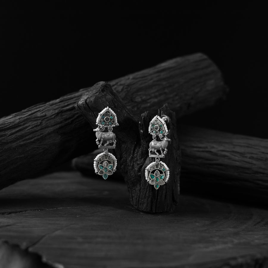 Oxidised handcrafted multicolor earrings made with a blend of metal, stones and fine detailing. Perfect for festive occasions, weddings, casual outings, office wear, or vacations. Their elegant black and silver tones pair beautifully with everything from casual jeans and flowy dresses to chic office ensembles. A meaningful gift for mother, sister, wife, or girlfriend adding a beautiful touch of tradition to every moment.