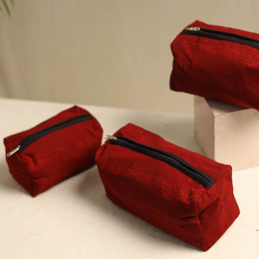 Stay stylish and organized with these red multipurpose handmade cotton toiletry bags (Set of 3) crafted by skilled artisans. Perfect for travel, cosmetics, or everyday essentials, this eco-friendly pouch set offers both durability and charm.