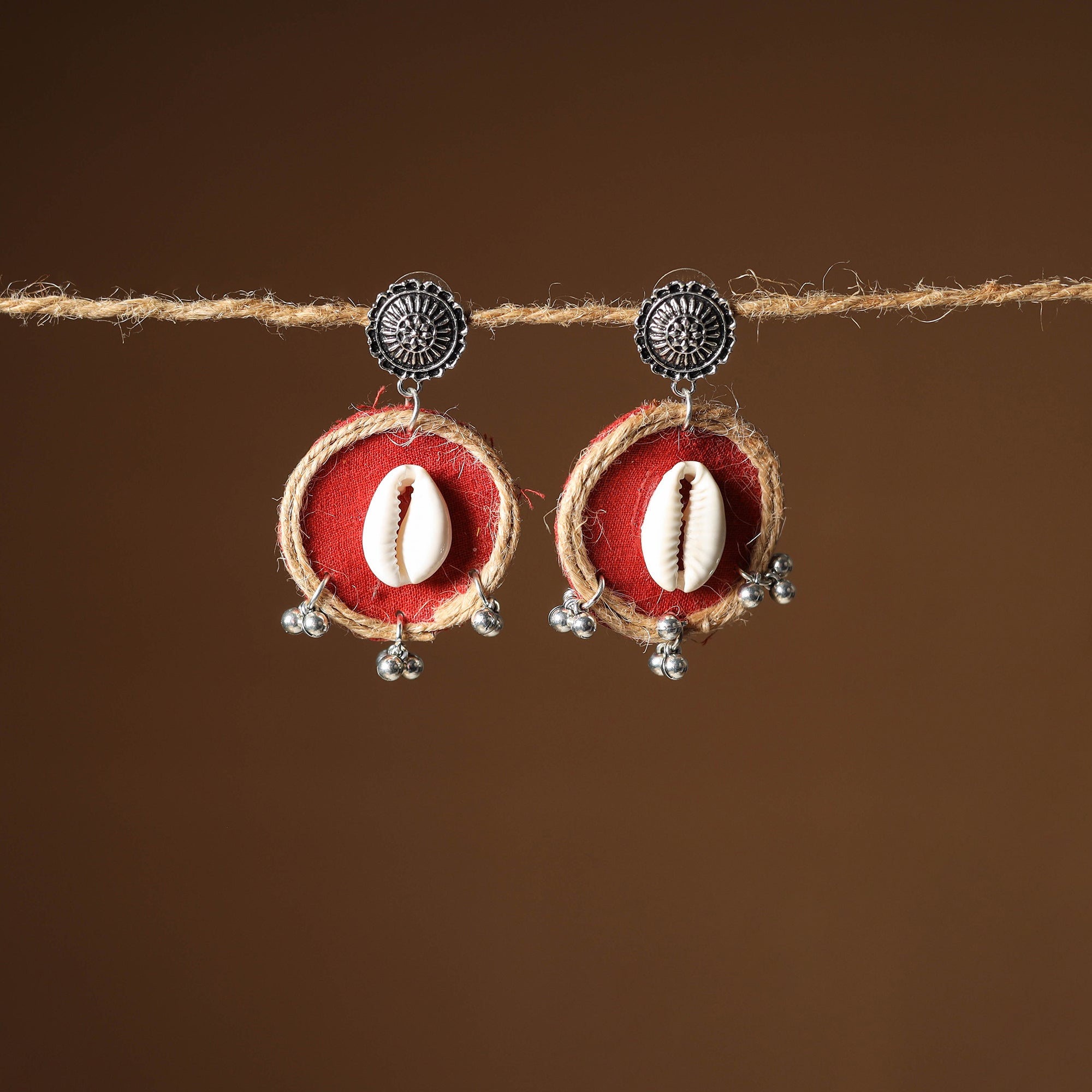 Complete your look with red handcrafted earrings made from fabric, jute, german silver, and shells. These earrings blend tradition with trend, adding a unique charm to your style. Perfect for daily wear or special occasions, each piece is lovingly made by artisans true style comes from the heart.