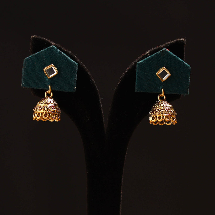 Enhance your look with these beautiful green handmade gold-tone GS stonework Fabart Jhumki earrings. Inspired by traditional designs, each piece reflects the artistry of skilled artisans. Lightweight and versatile, they are perfect for festive occasions or everyday elegance.